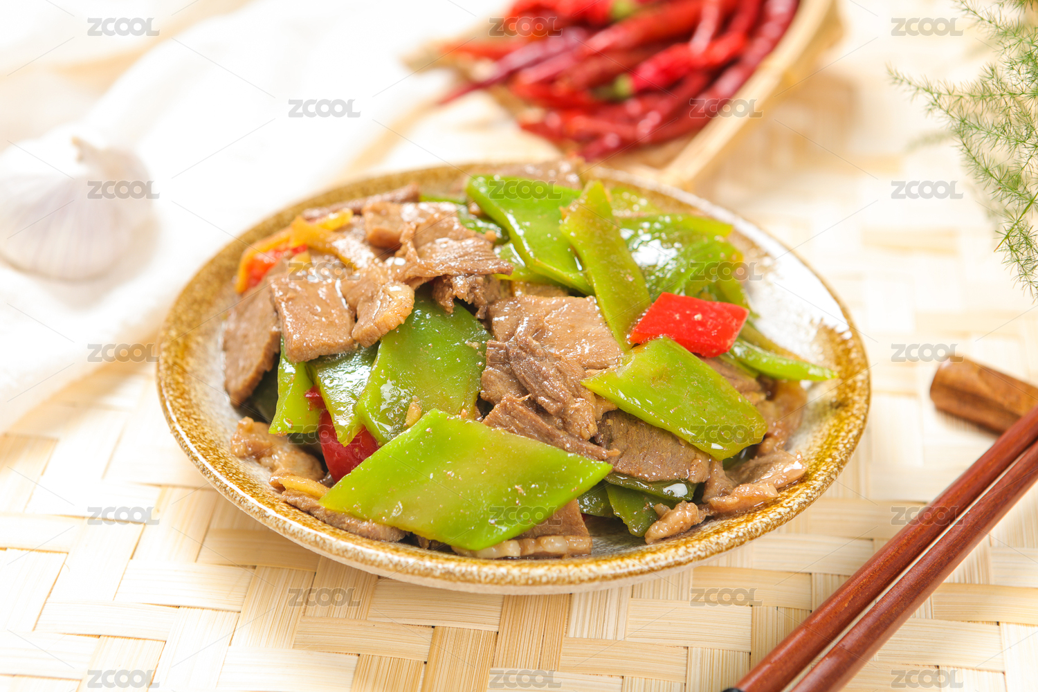 盘子里的莴笋炒肉丝