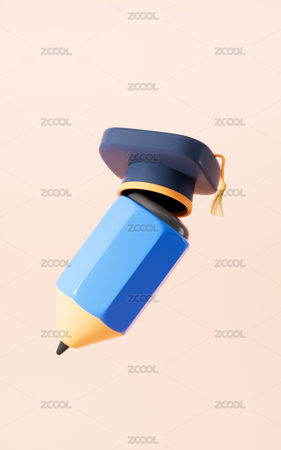 卡通铅笔和毕业帽3D渲染
