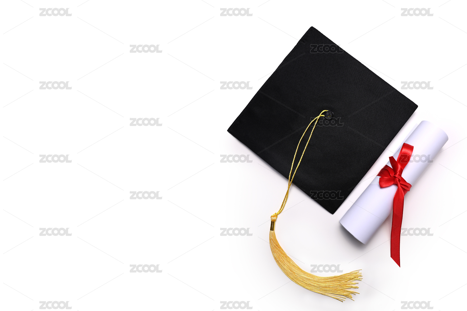 白背景毕业帽和毕业证书