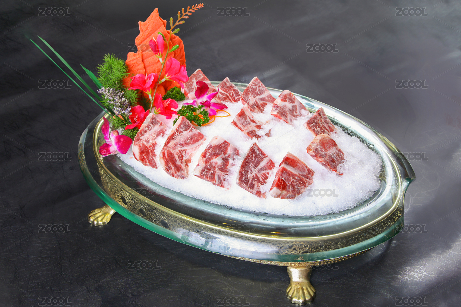 香煎牛仔骨(生鲜牛仔骨)摆放在寿司帘上