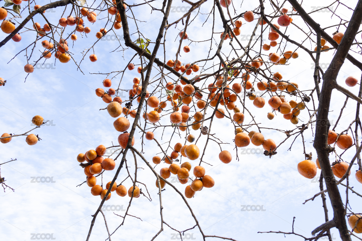 秋日柿子树果实累累