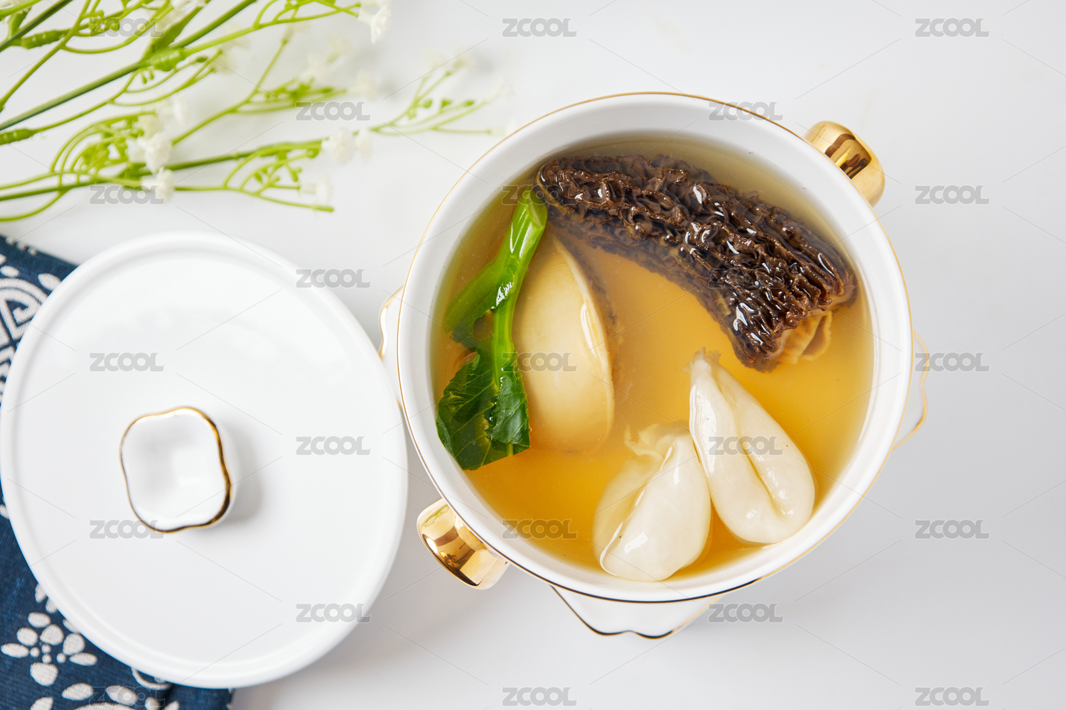 春日时尚滋补养生美食羊肚菌花胶炖鲜鲍