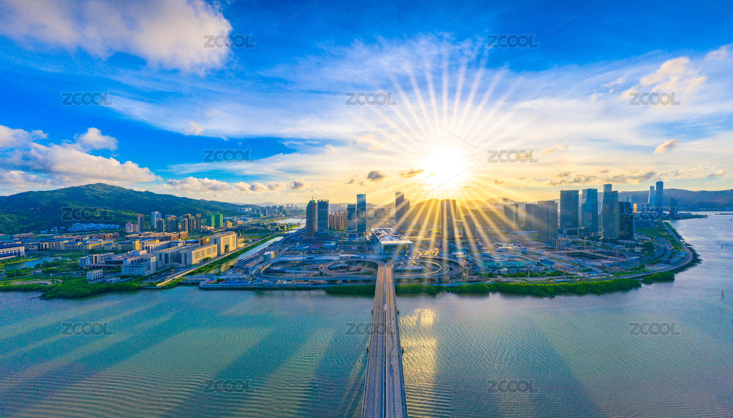 蓝天白云下的武汉长江大桥与鹦鹉洲大桥