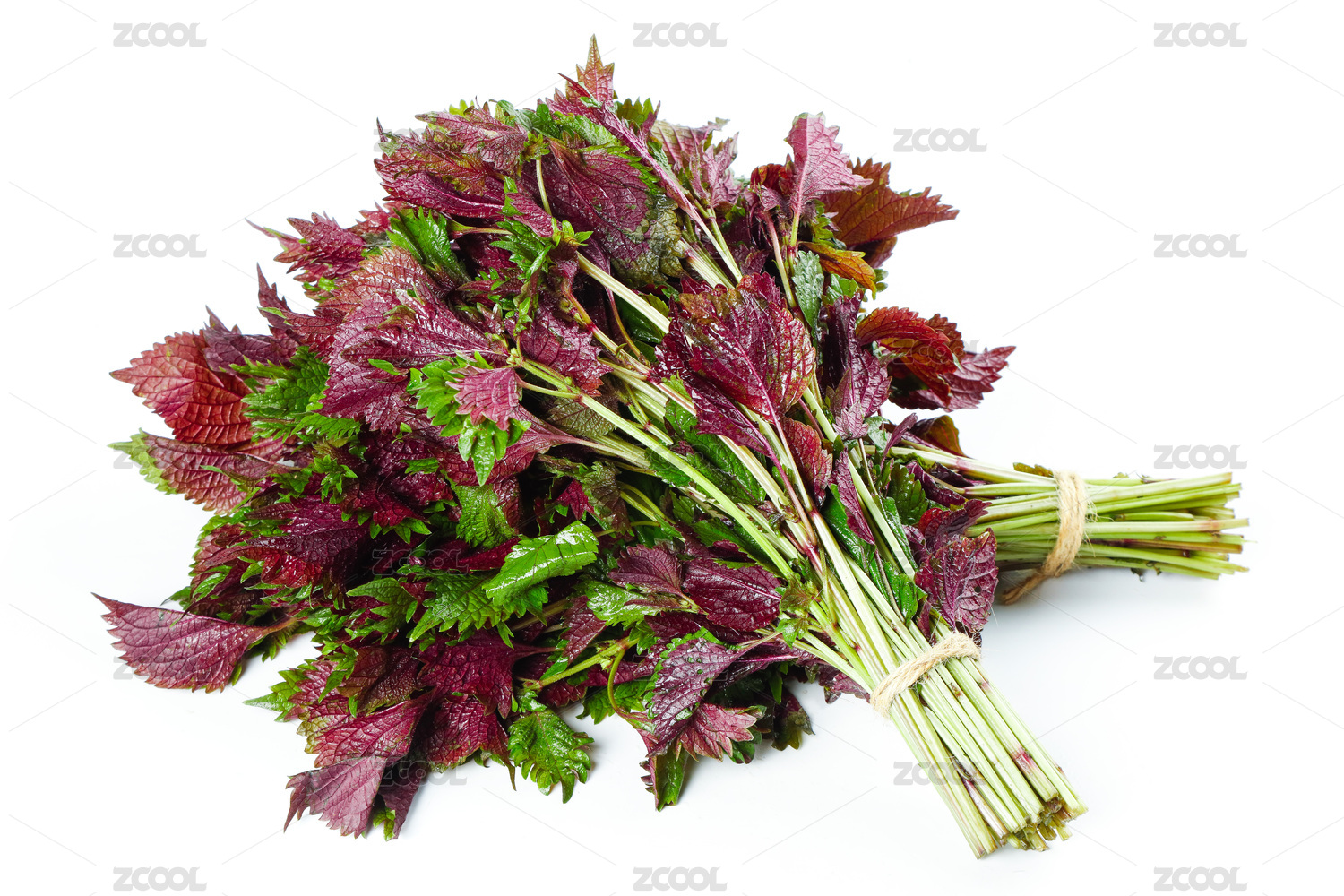白底上放着两把紫苏
