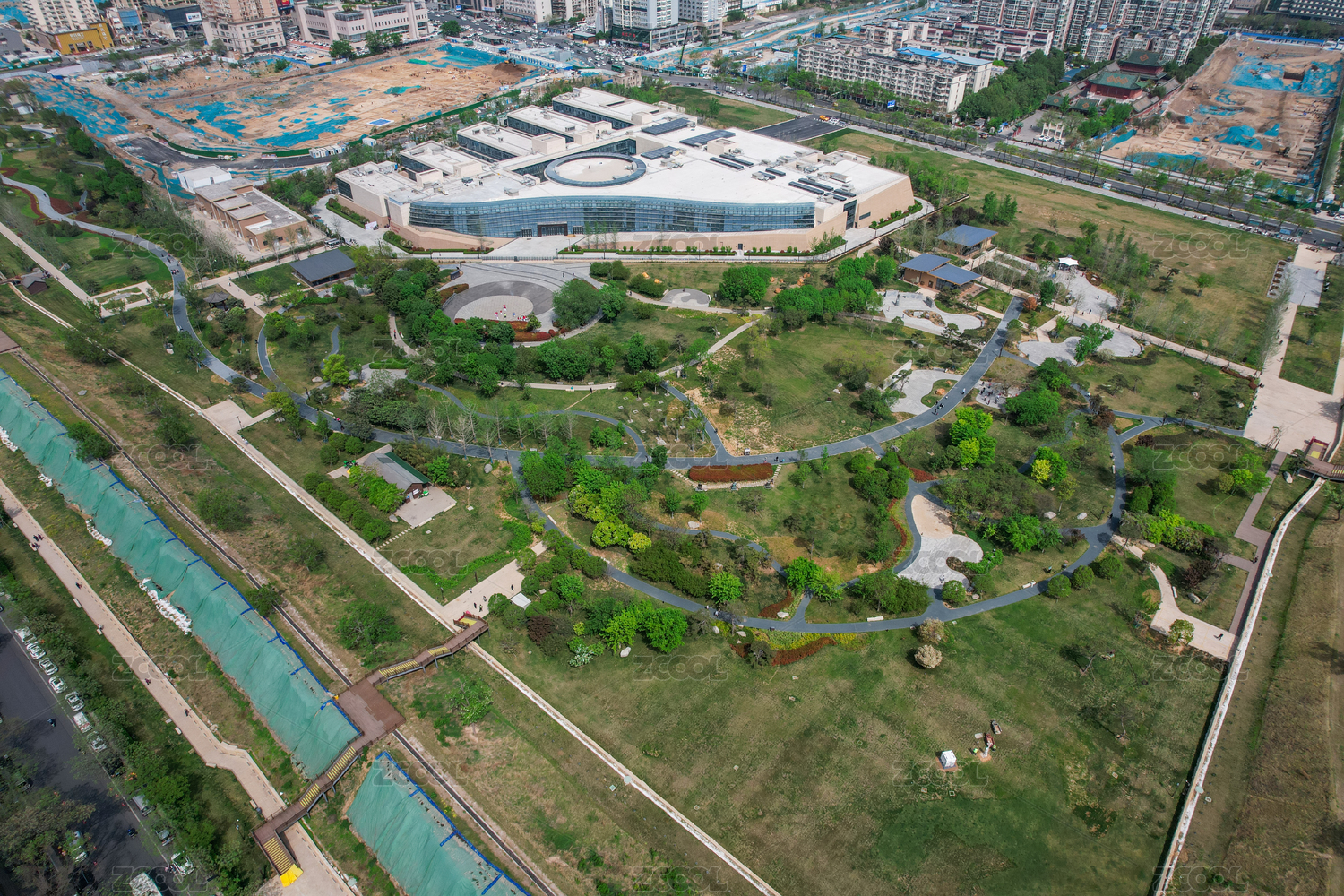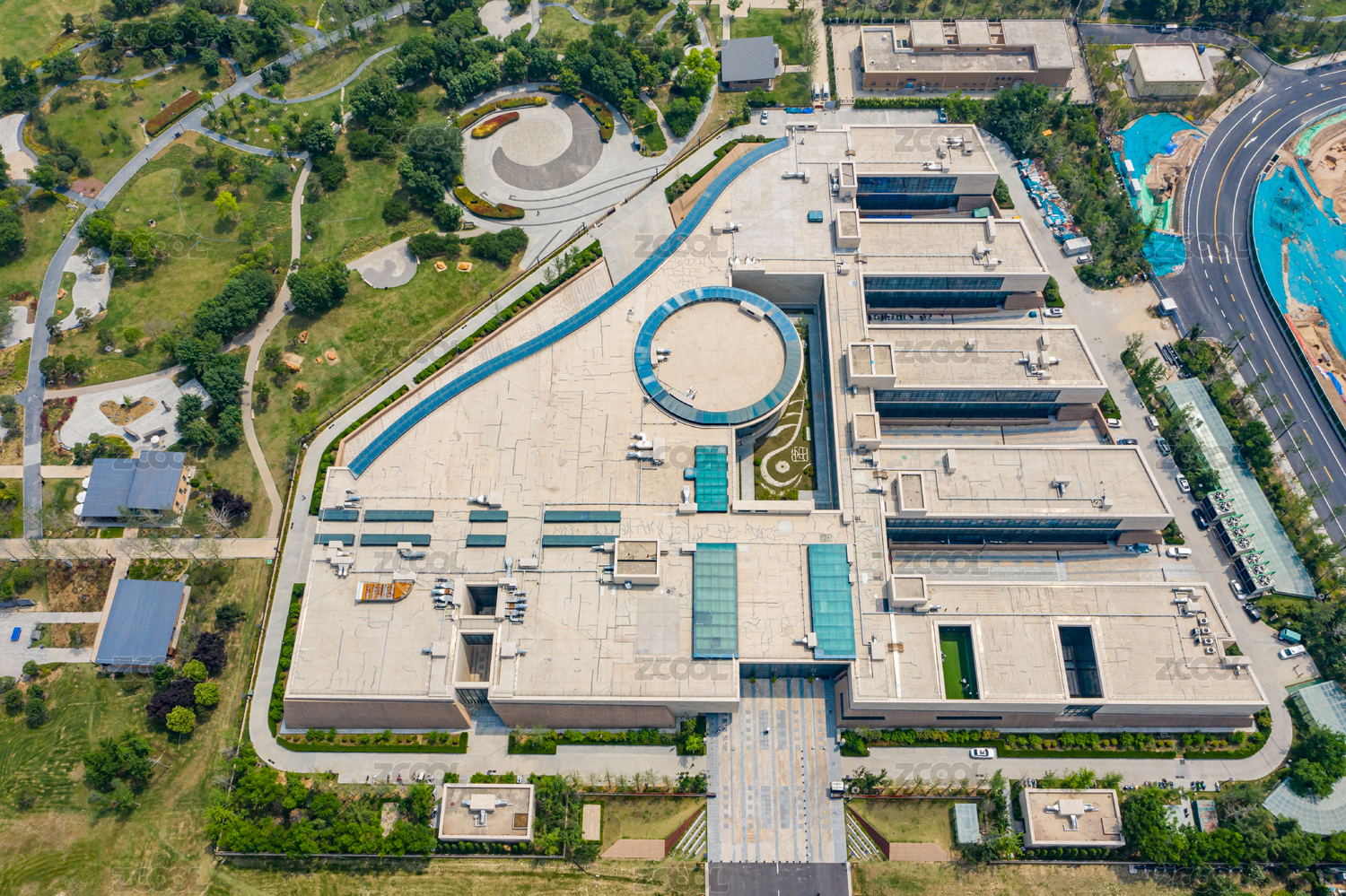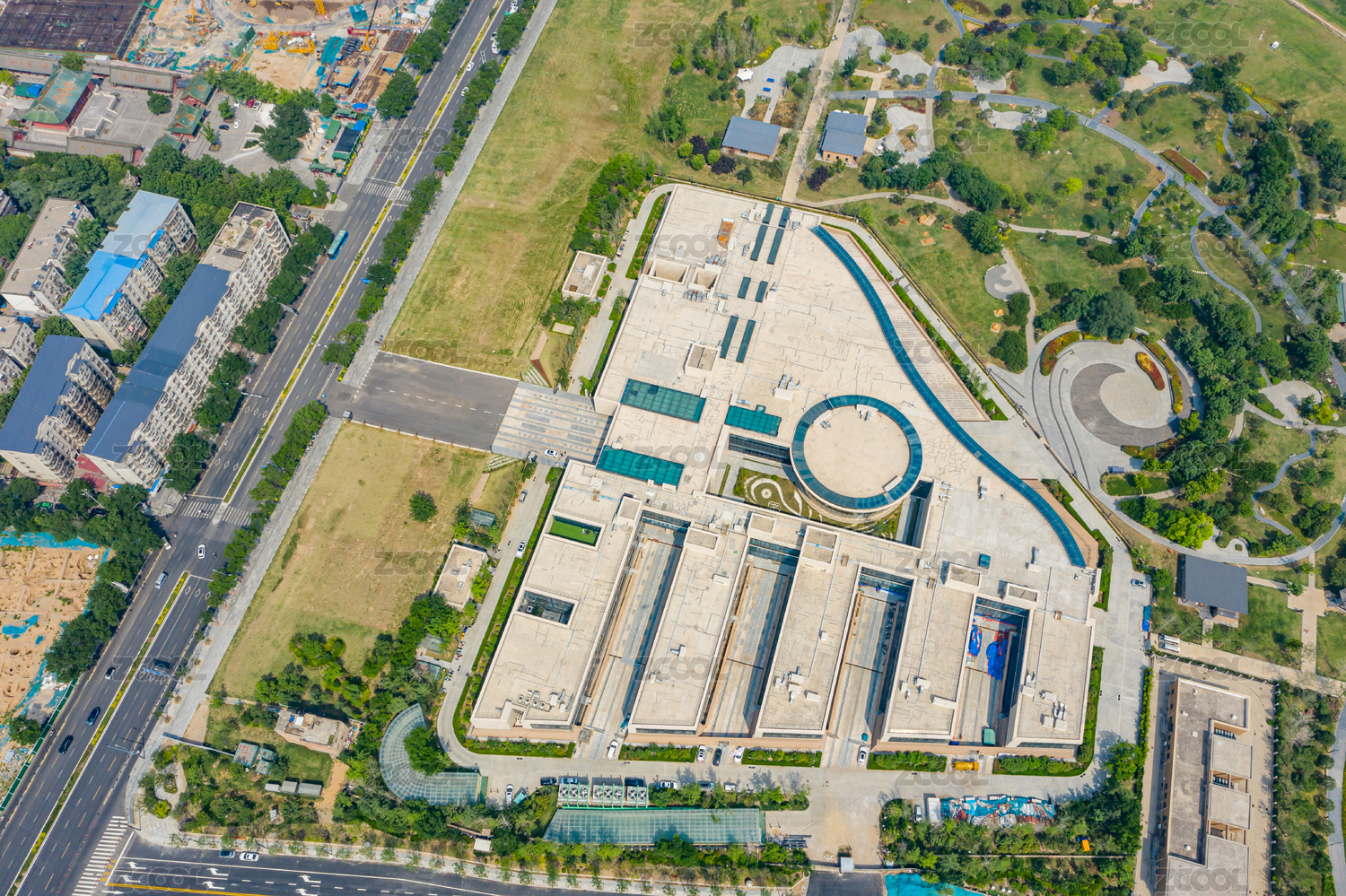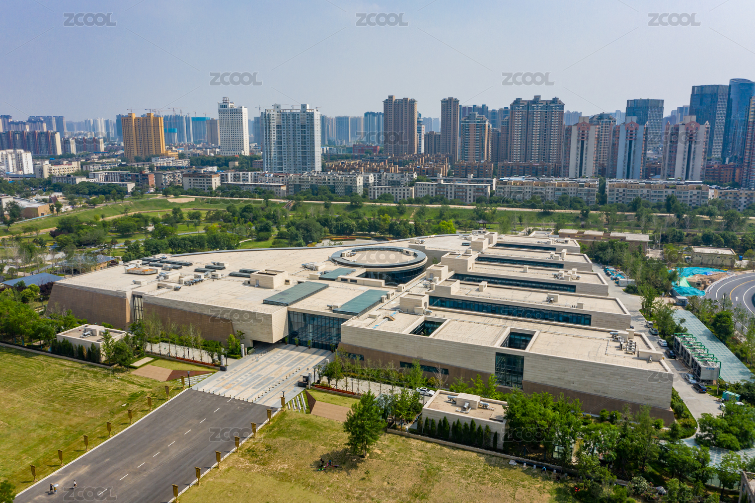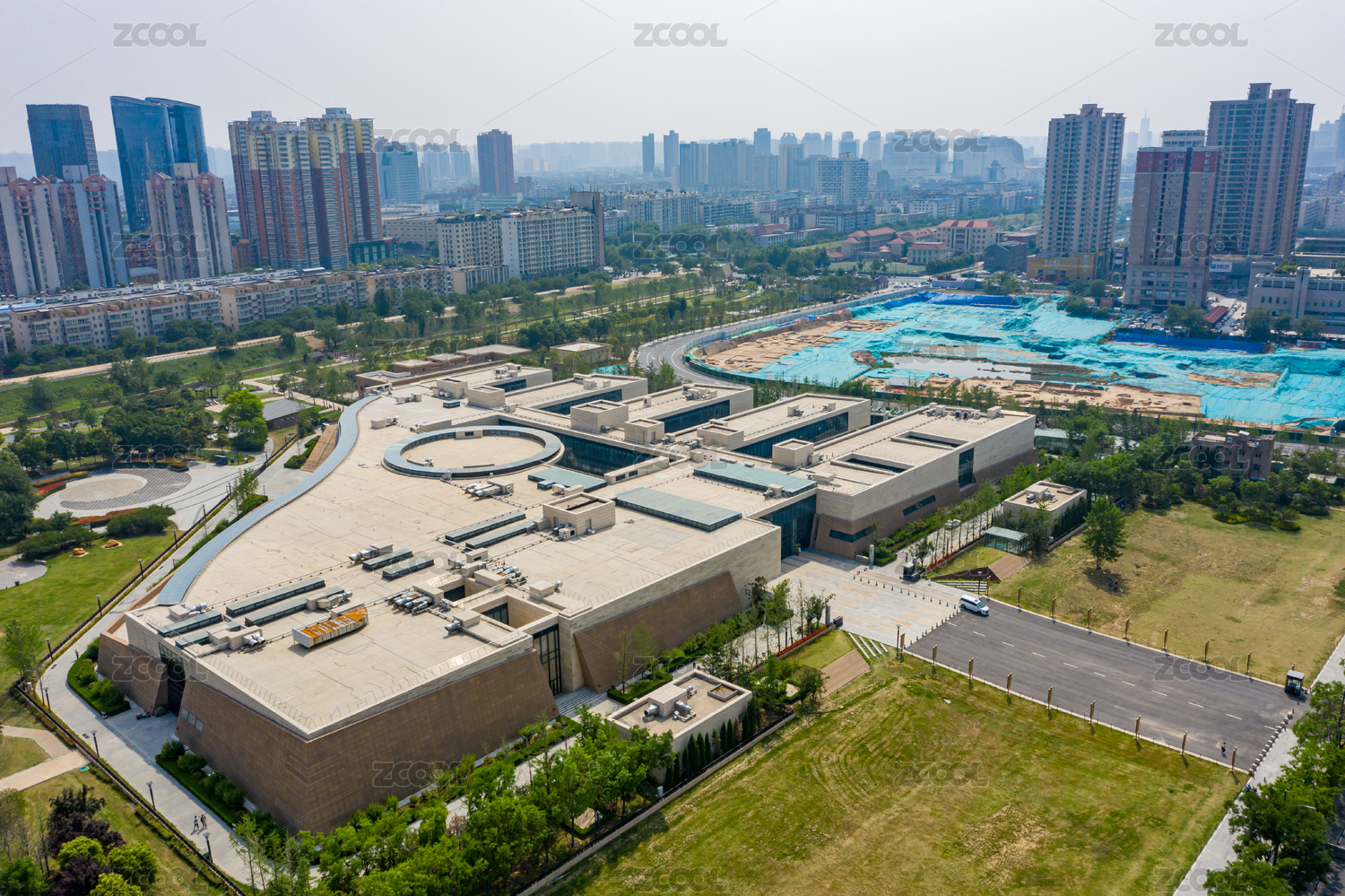 航拍郑州商都遗址博物院钢琴形状博物馆建筑