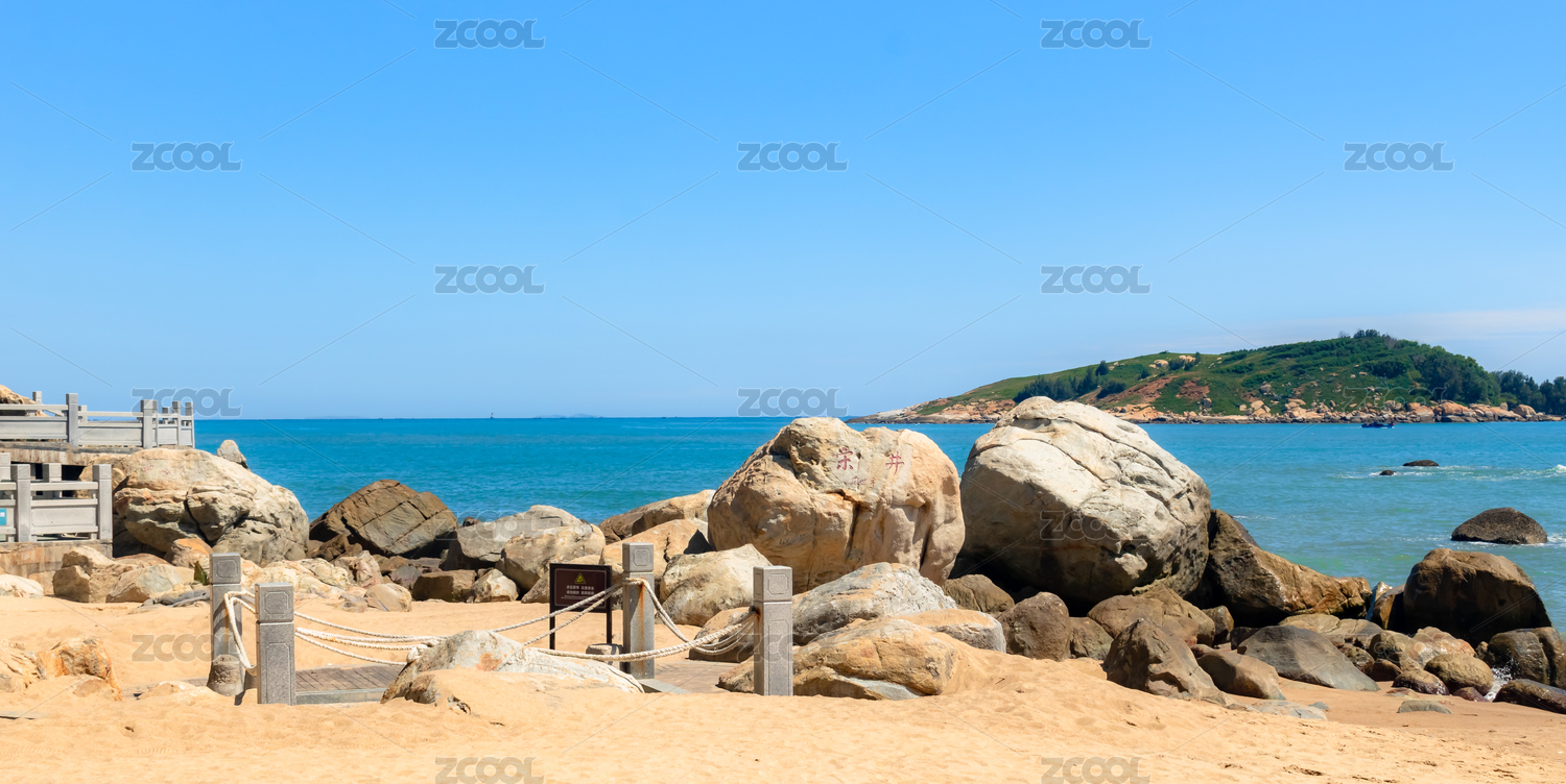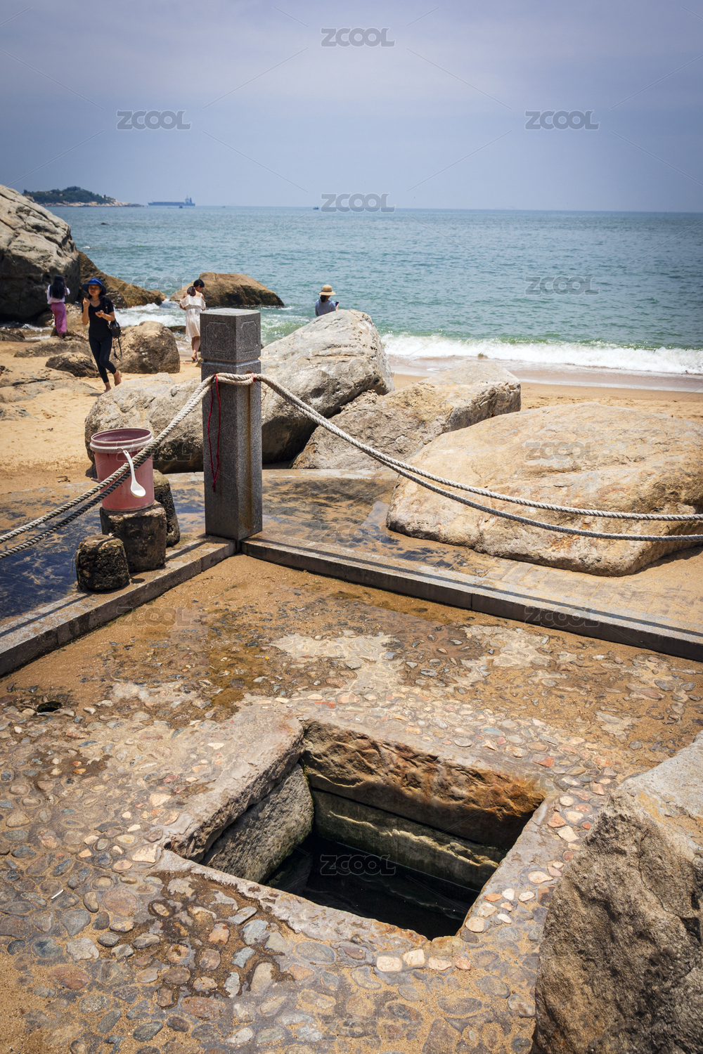 中国汕头南澳岛宋井风景区沙滩上的宋井