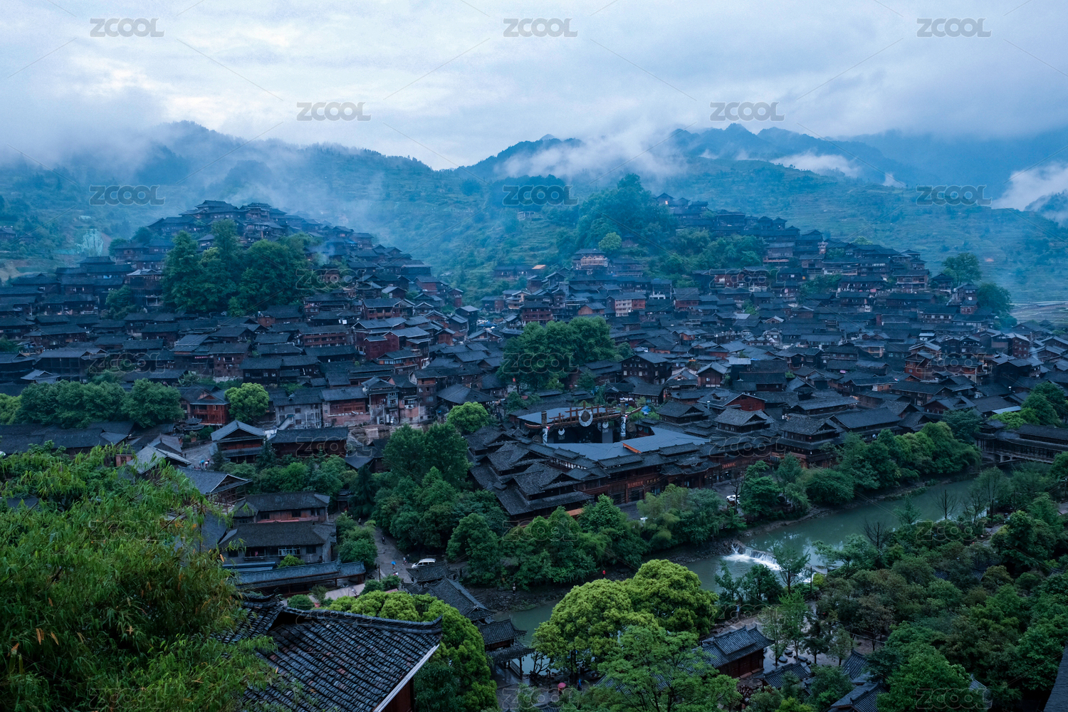 贵州西江千户苗寨|苗族特色地标建筑群全景
