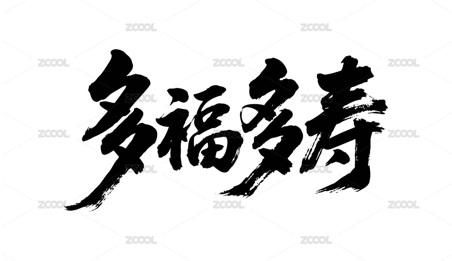 多福多寿矢量书法手写毛笔字