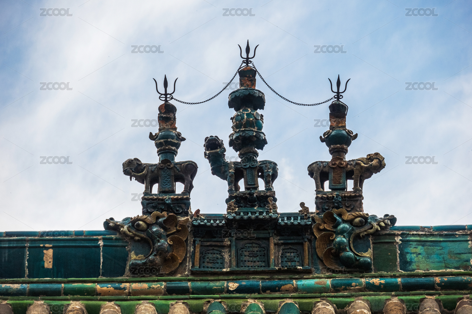 山西太原多福寺屋顶琉璃饰物