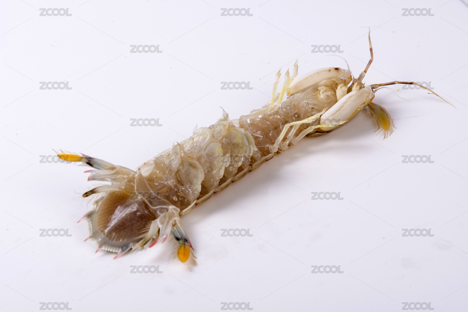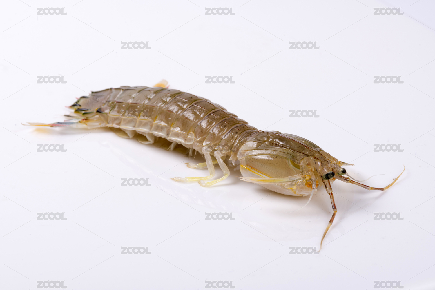 白背景上一只新鲜的皮皮虾
