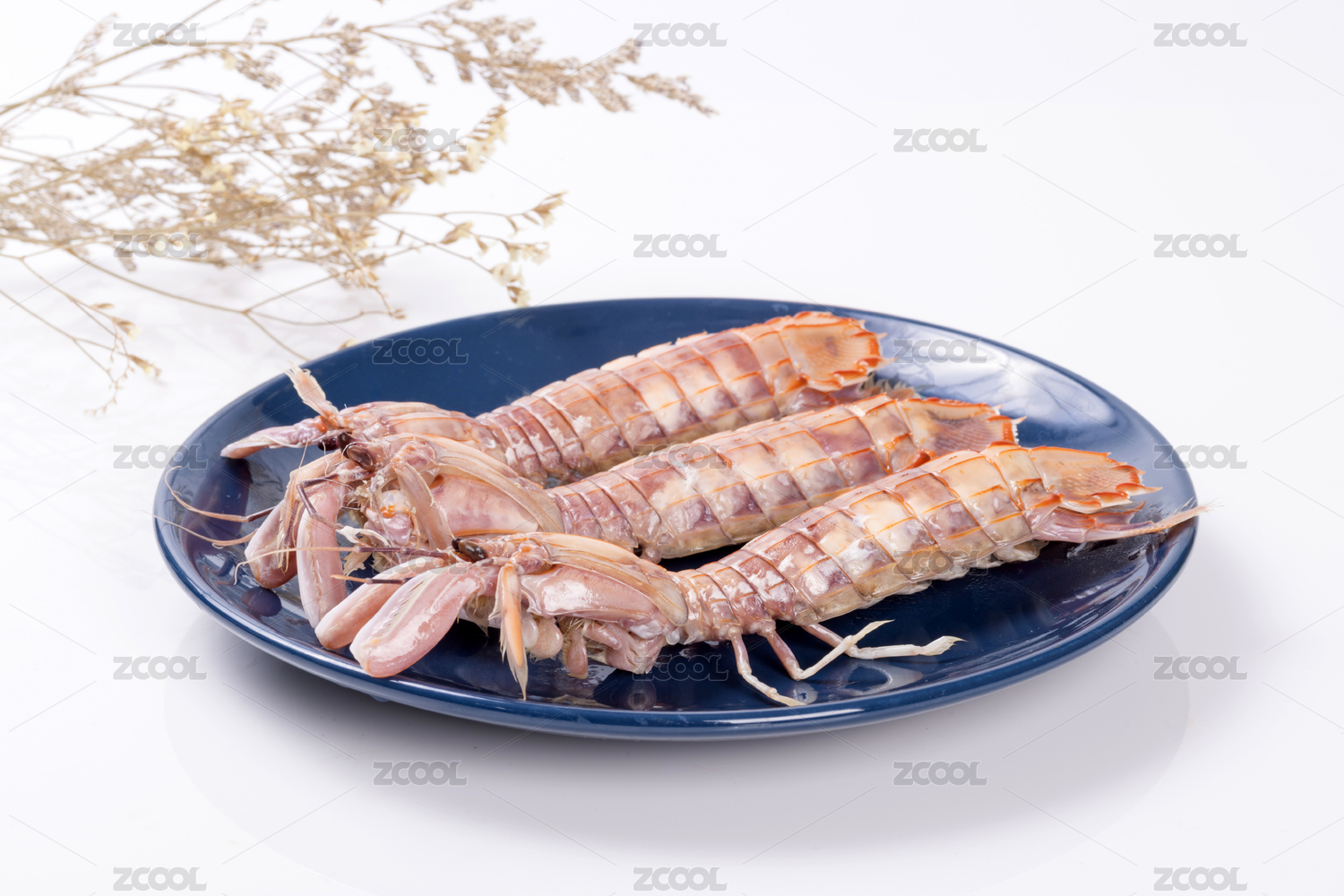 白盘里的香辣皮皮虾