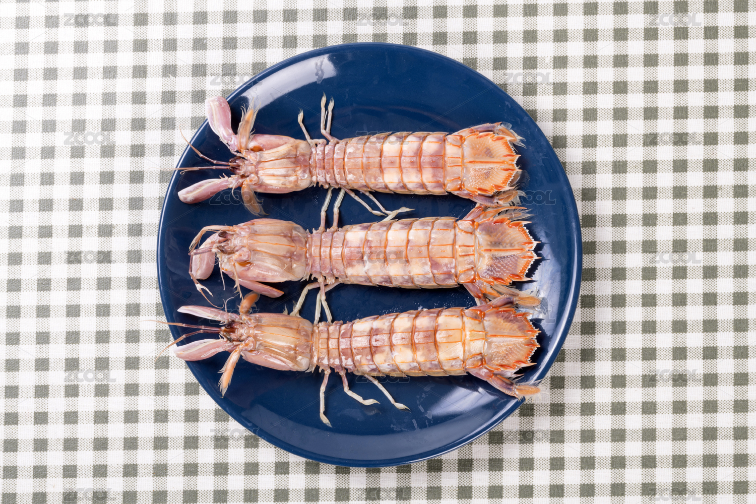 海鲜皮皮虾摆放在桌面上特写