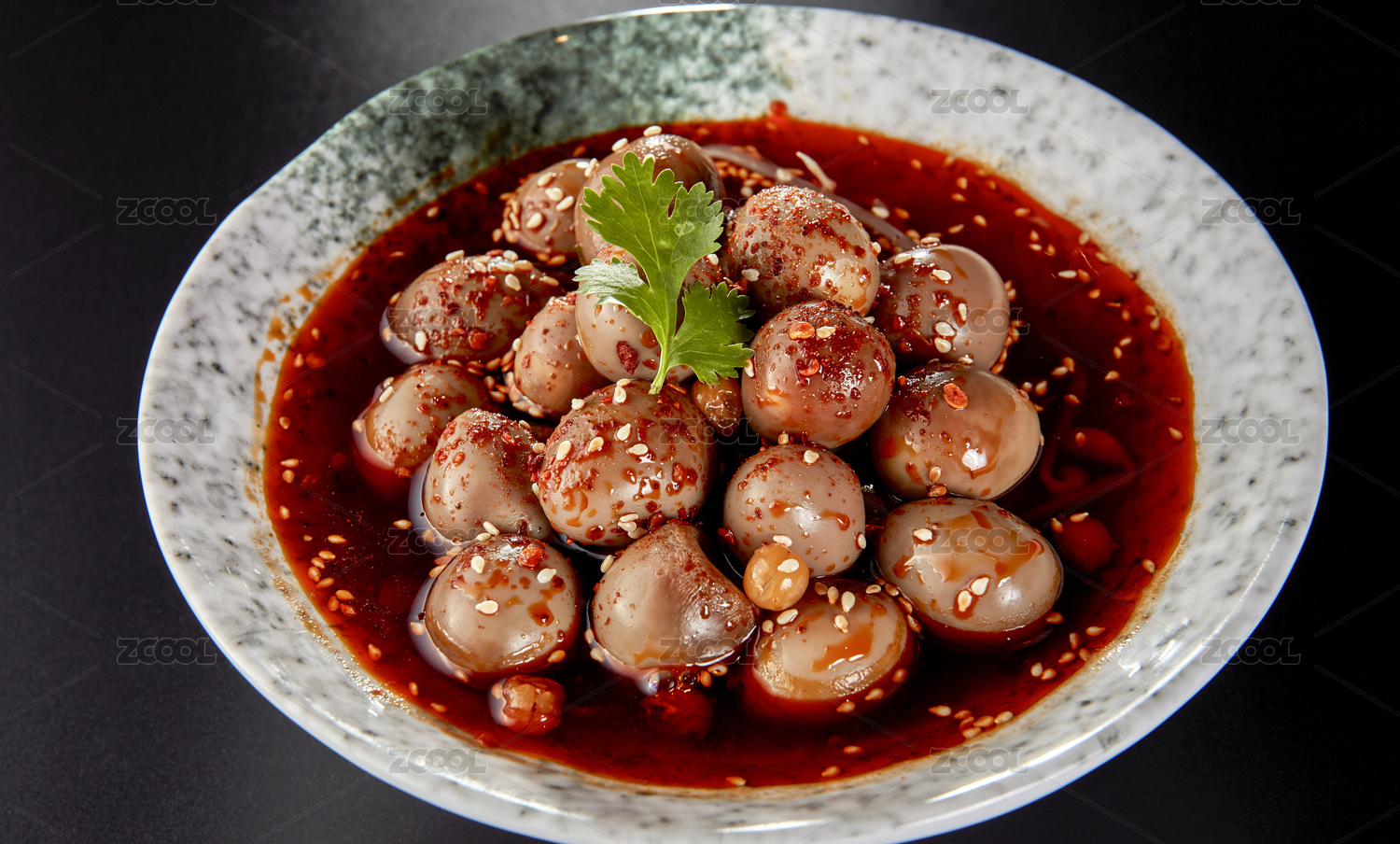 竹签串着的烧烤麻辣烤串烤鹌鹑蛋