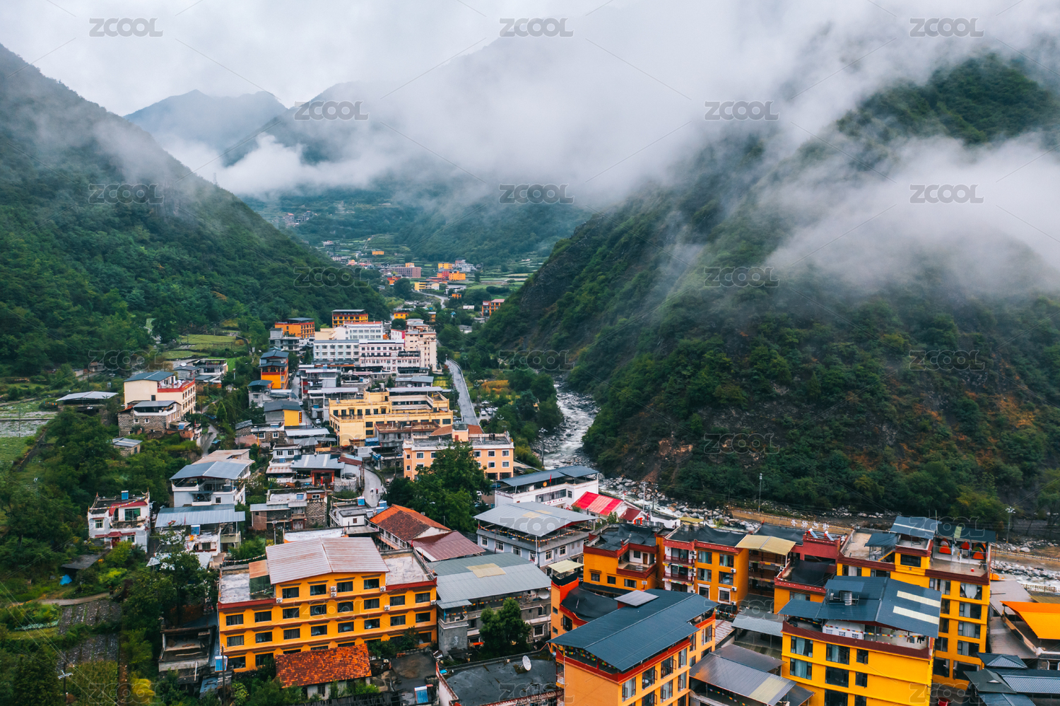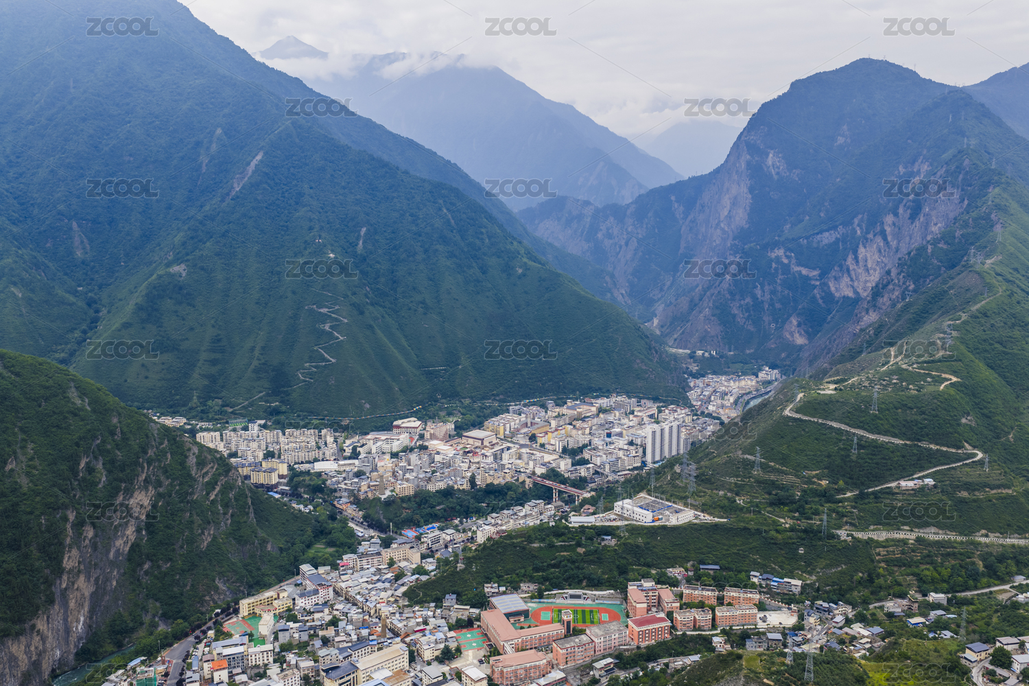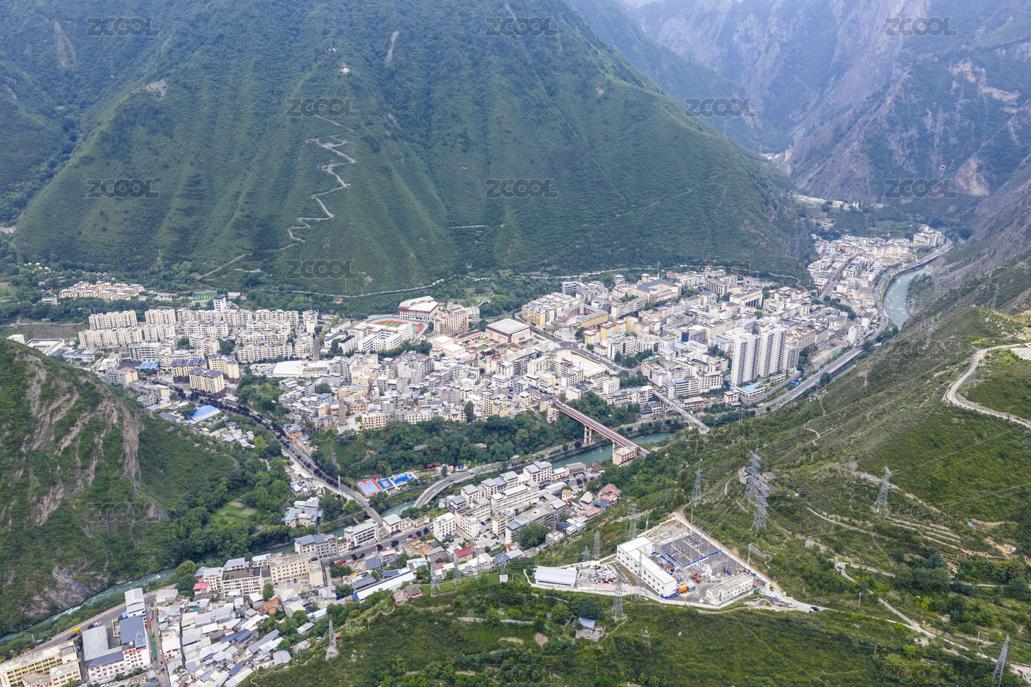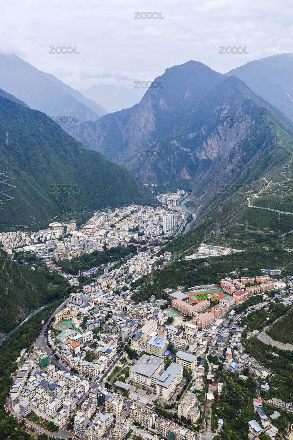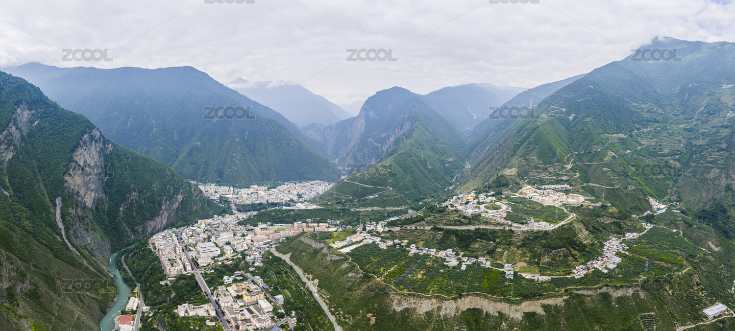 四川省阿坝州理县县城全景航拍