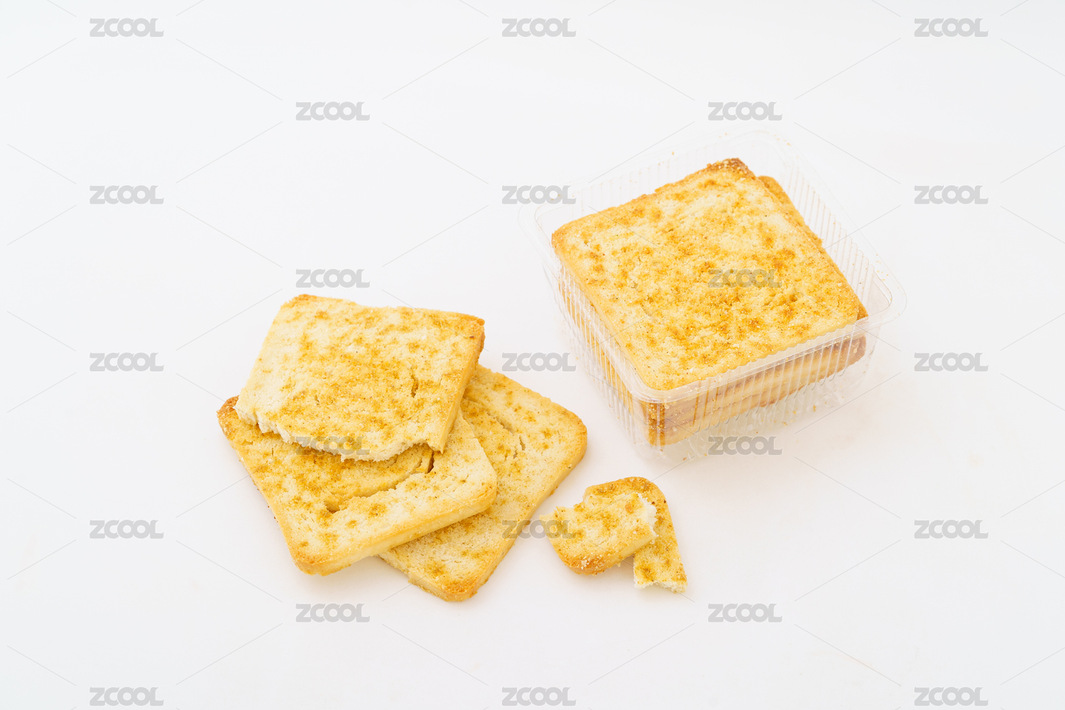 烤馍片烤馒头片摆放在桌面上特写