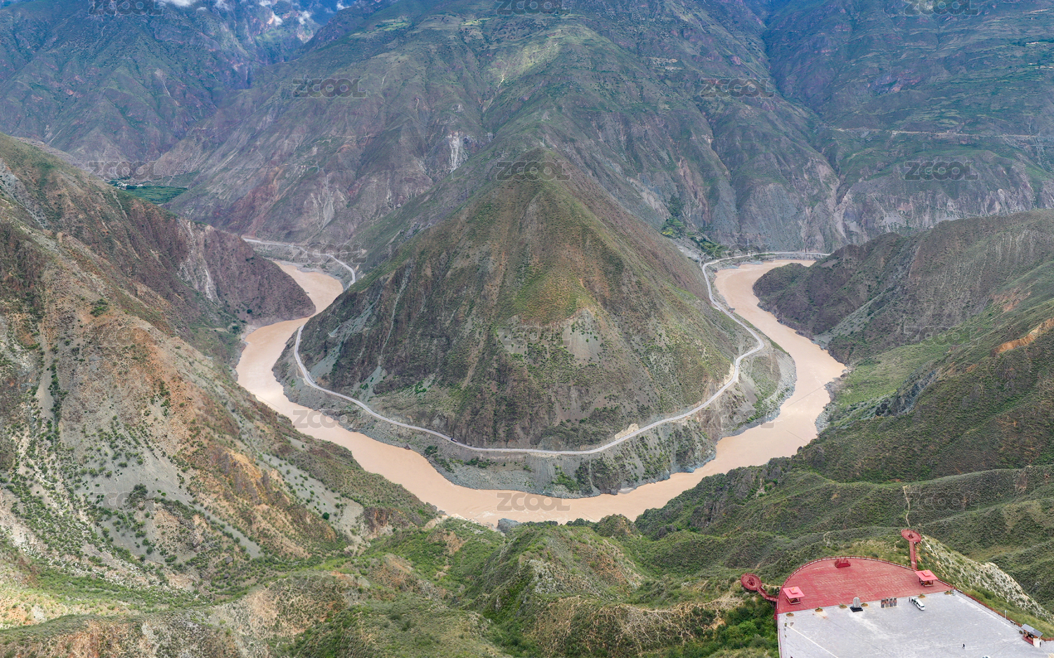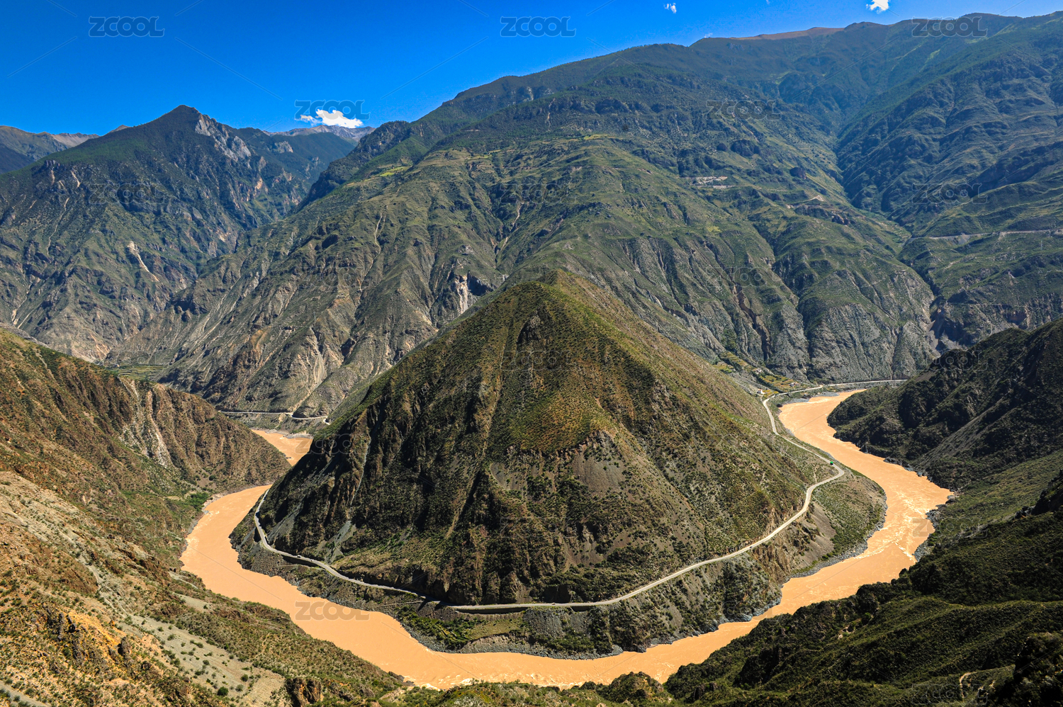 金沙江第一湾和蜿蜒的214国道