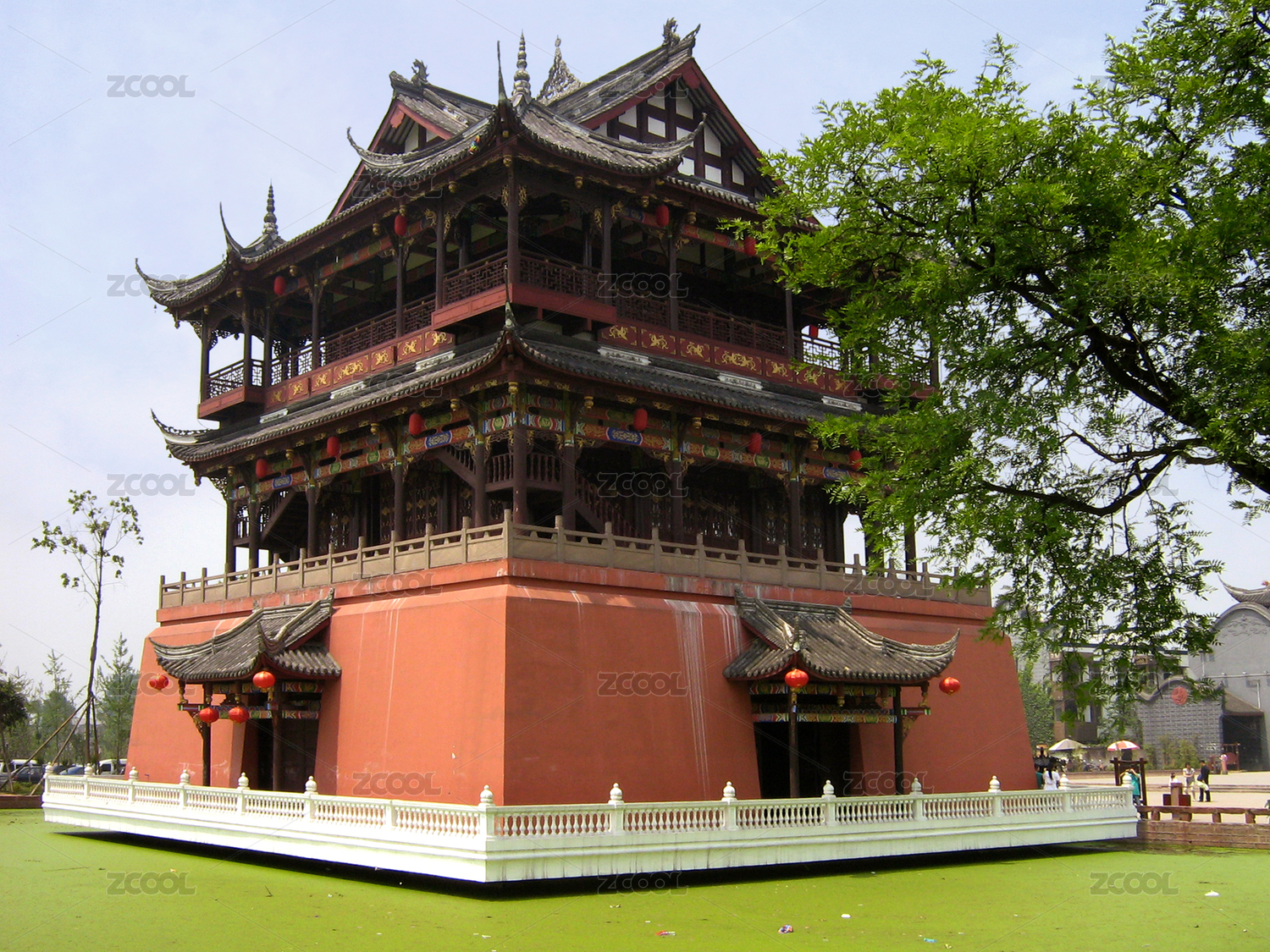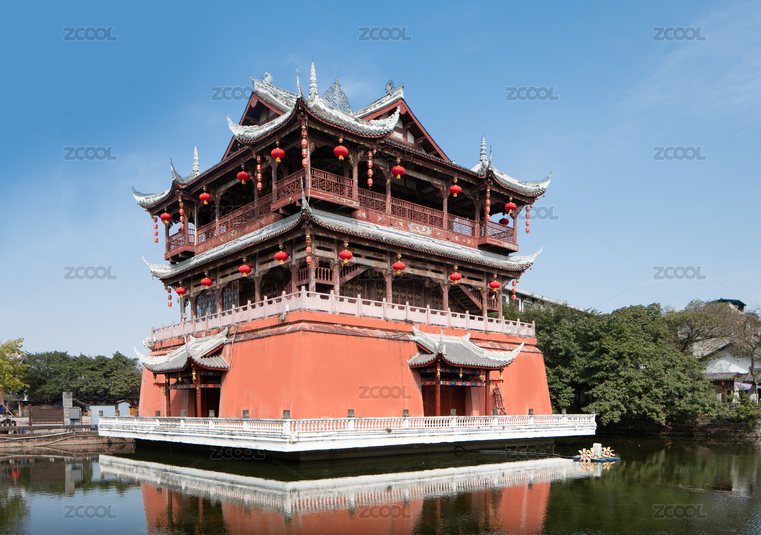 成都龙泉驿洛带古镇五凤楼白昼城市风光