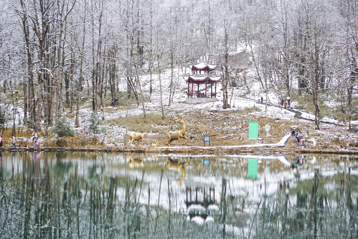中国四川雅安喇叭河景区冬季大雪纷飞