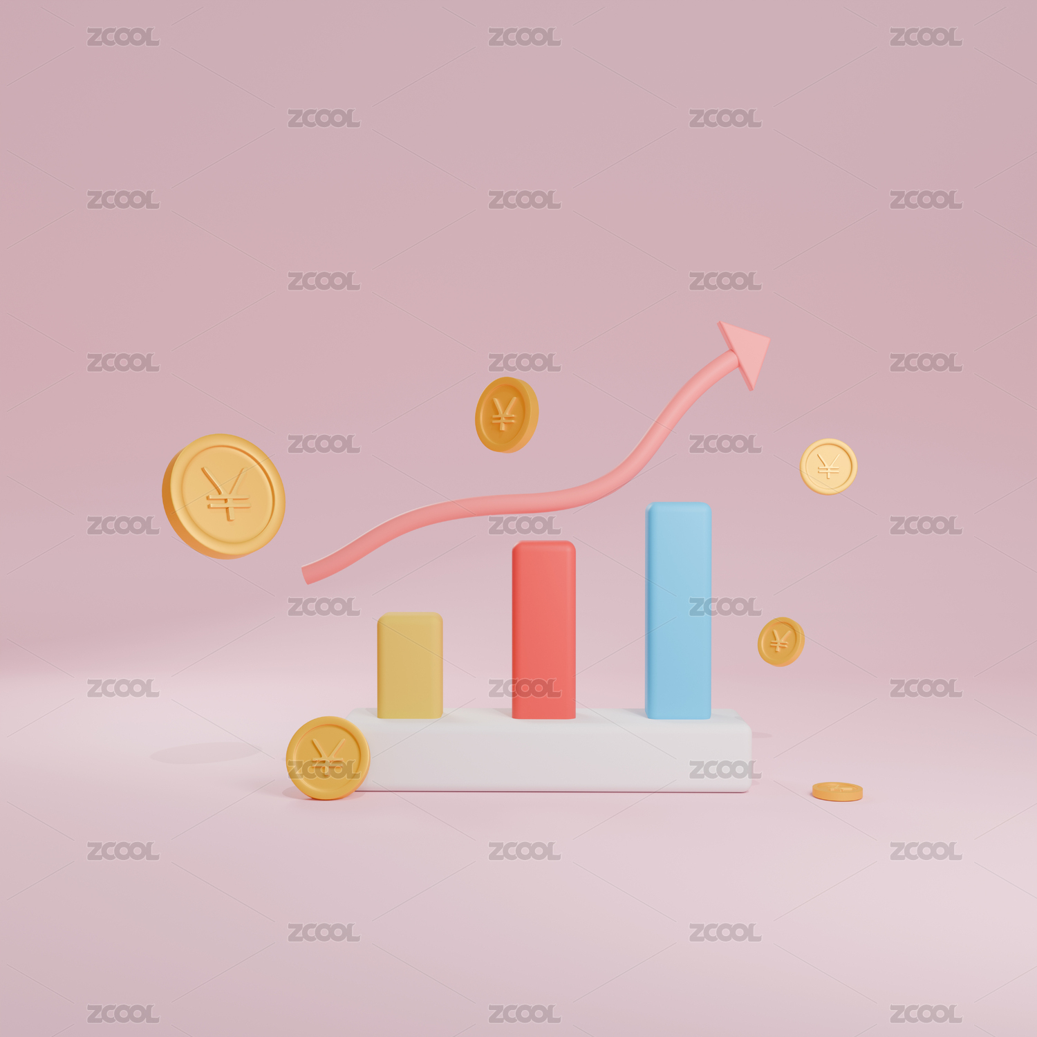 3D金币数据上升箭头