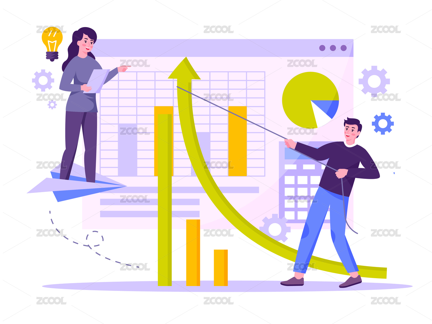 两个人在拔上升曲线矢量插画