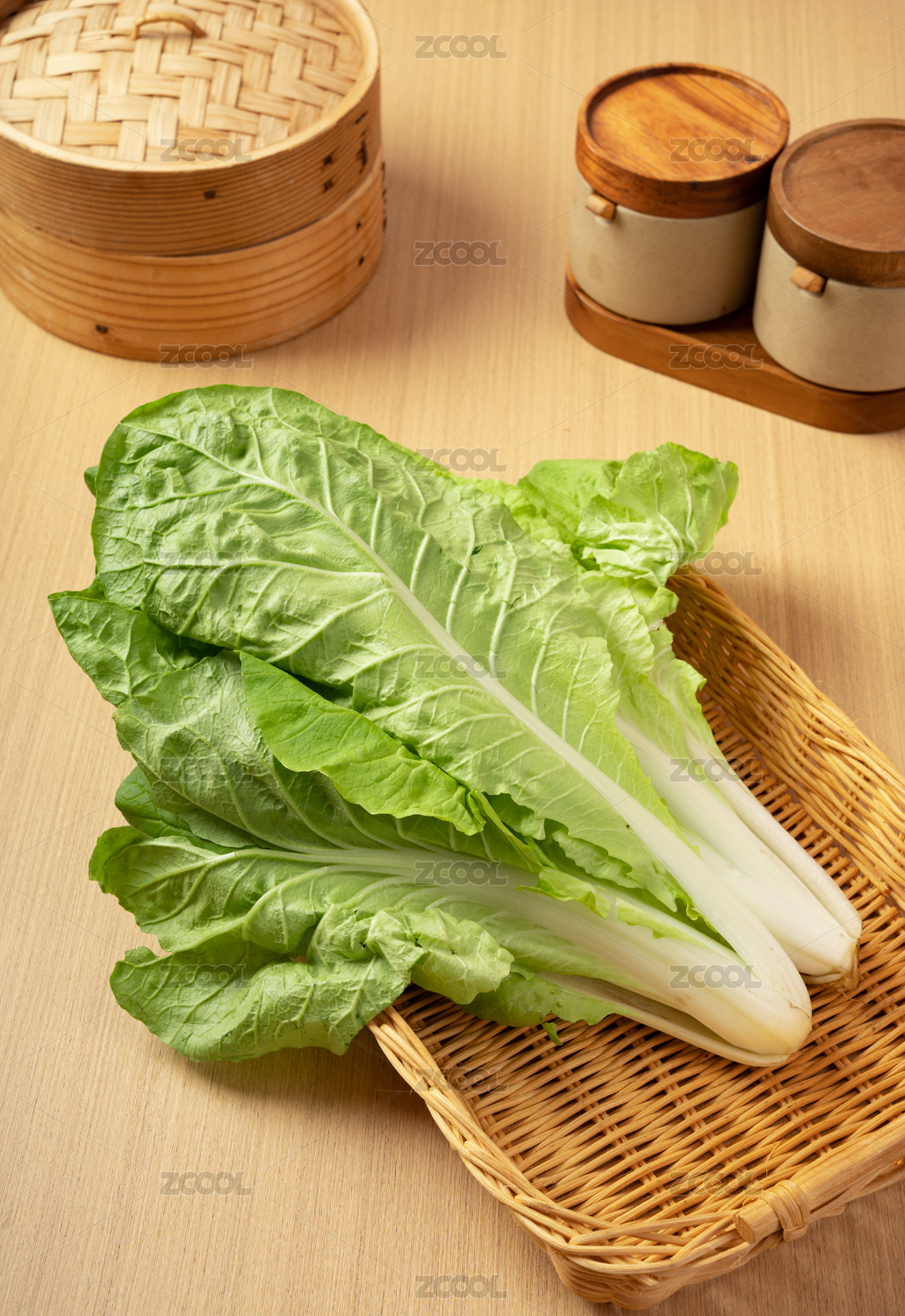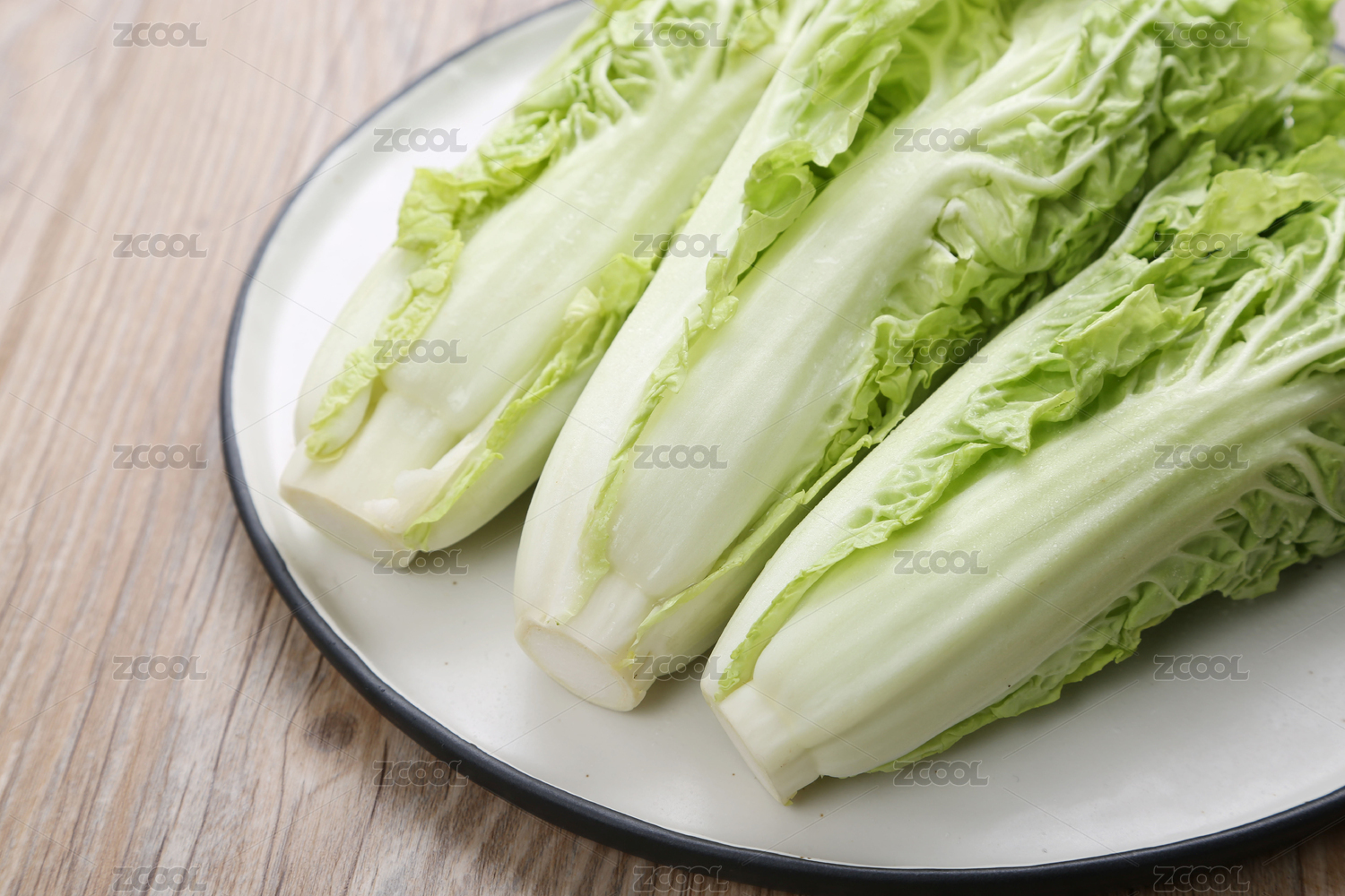 木质桌面上的杭白菜特写