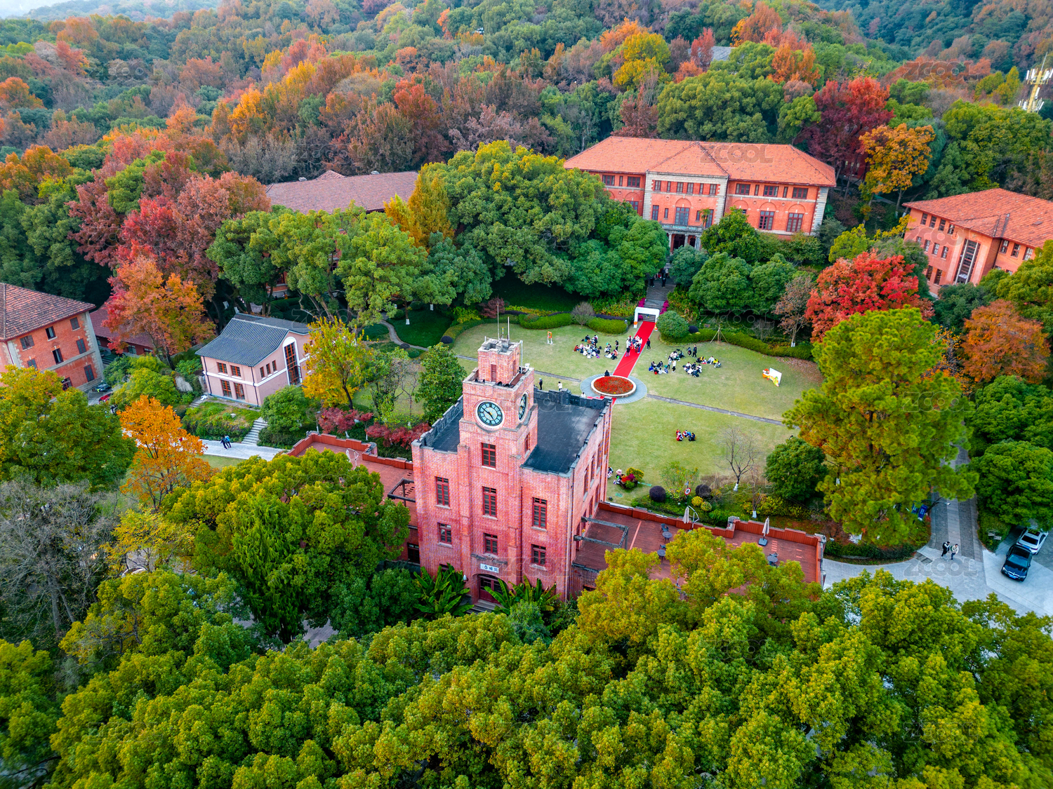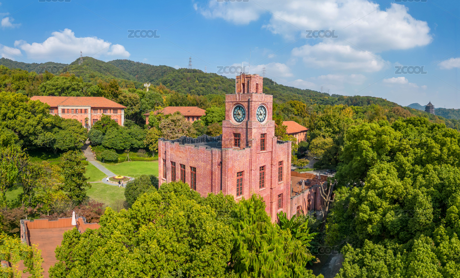 中国浙江省杭州市浙江大学之江校区航拍全景
