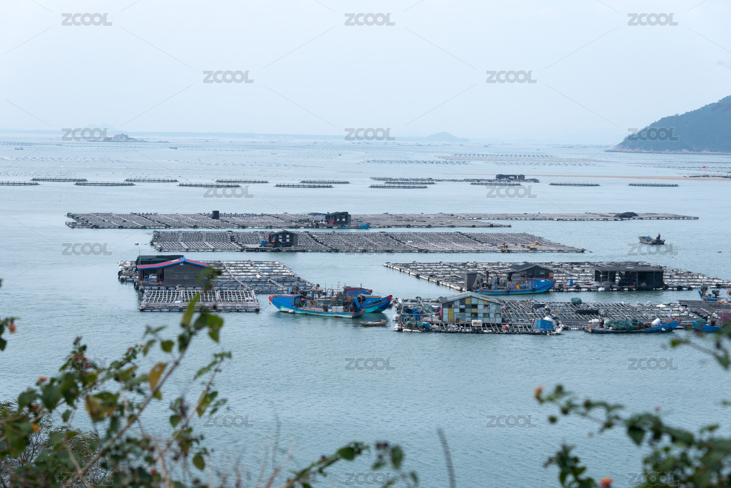 福建省漳州东山县鱼骨沙洲渔排与捕鱼网