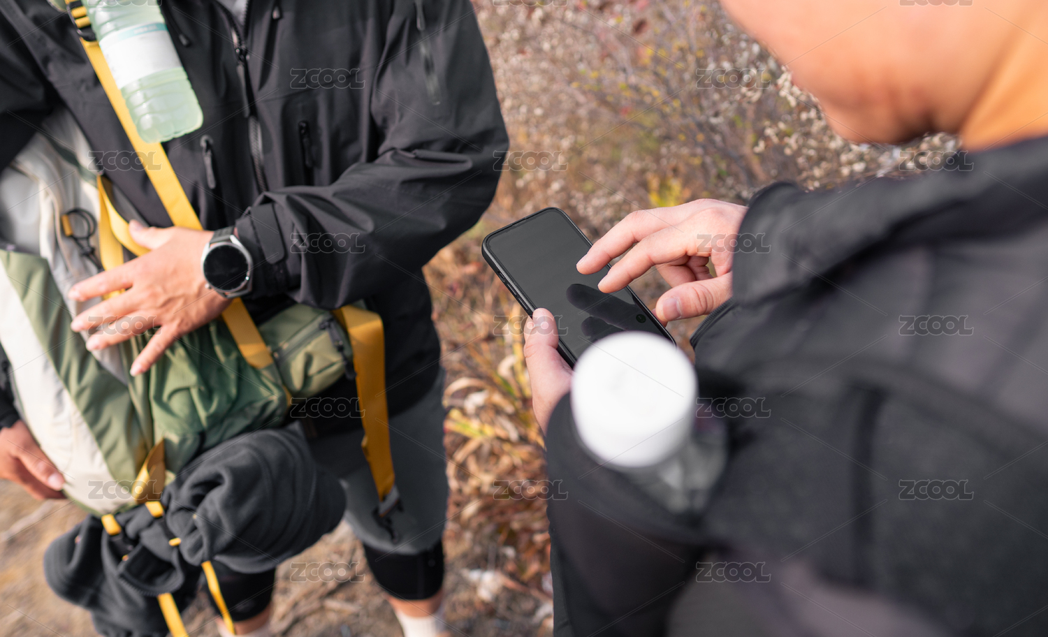 登山驴友在用手机查路线