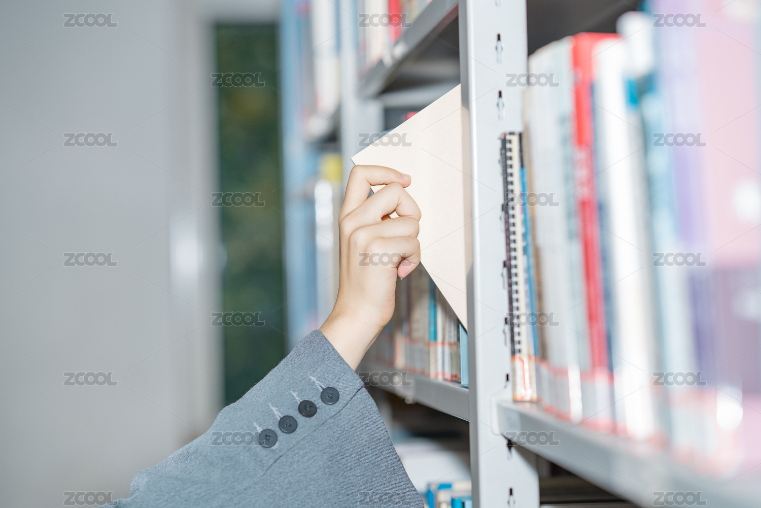 一个中国人美女图书馆拿出抽出书本课本文献借阅图书查找查询查阅资料学习知识