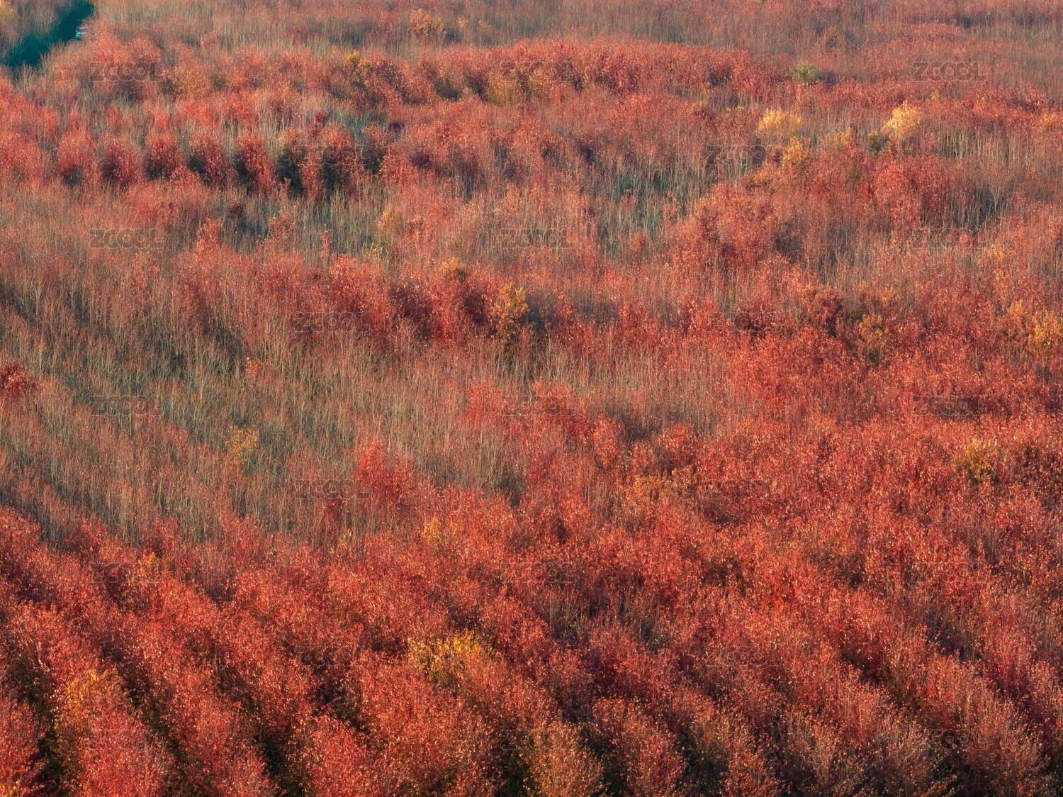 南京大泉水库旁秋天的彩色树林