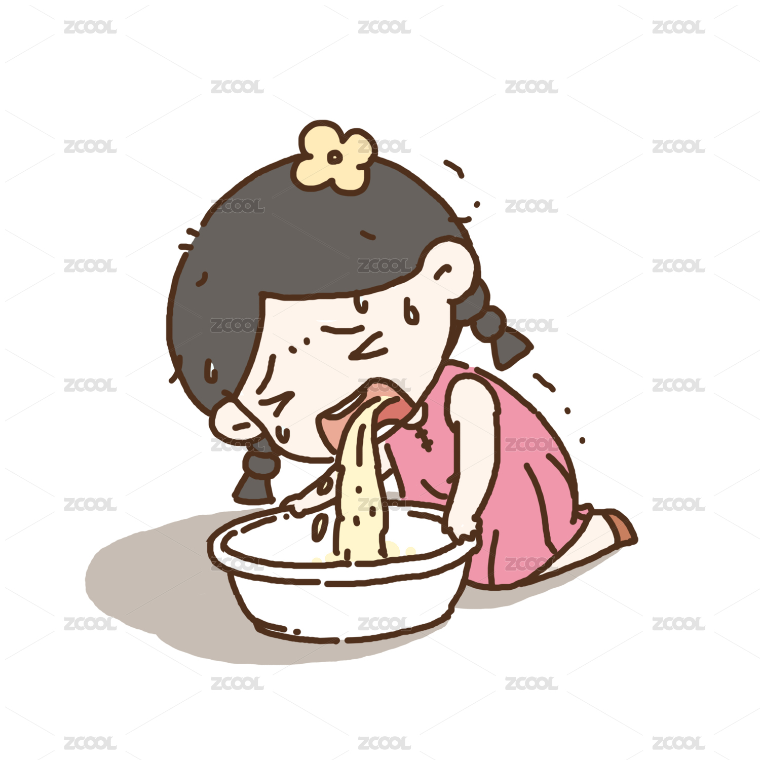 感染诺如病毒或吃错东西在呕吐的小孩子