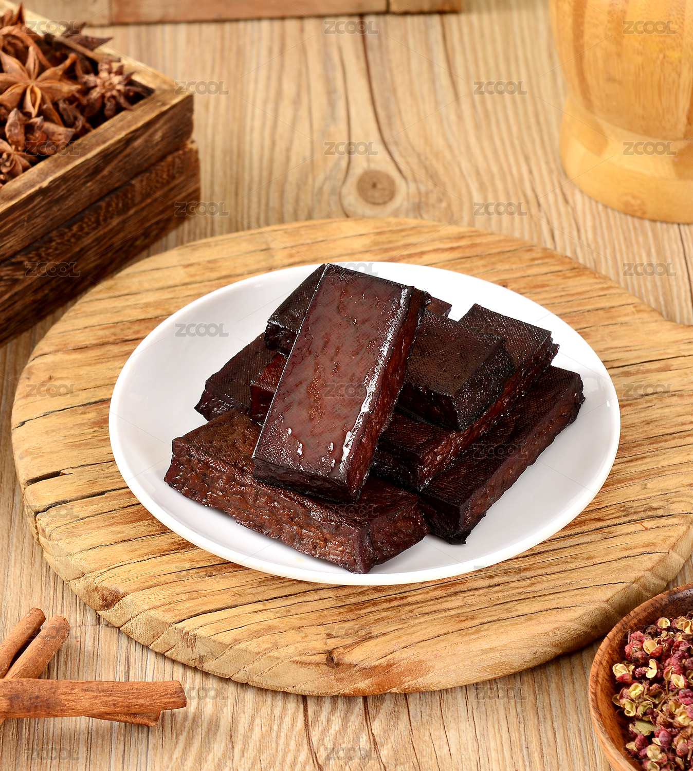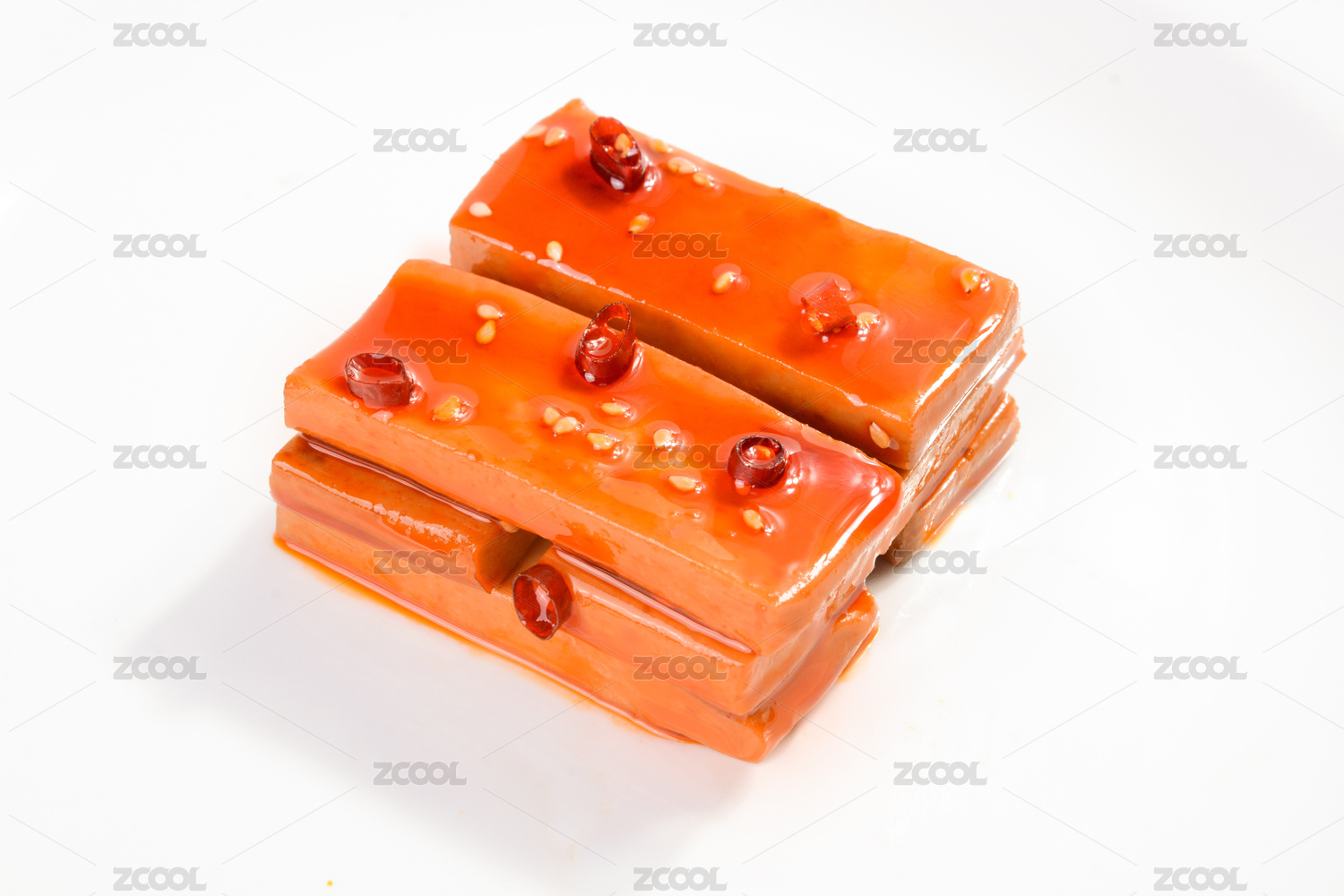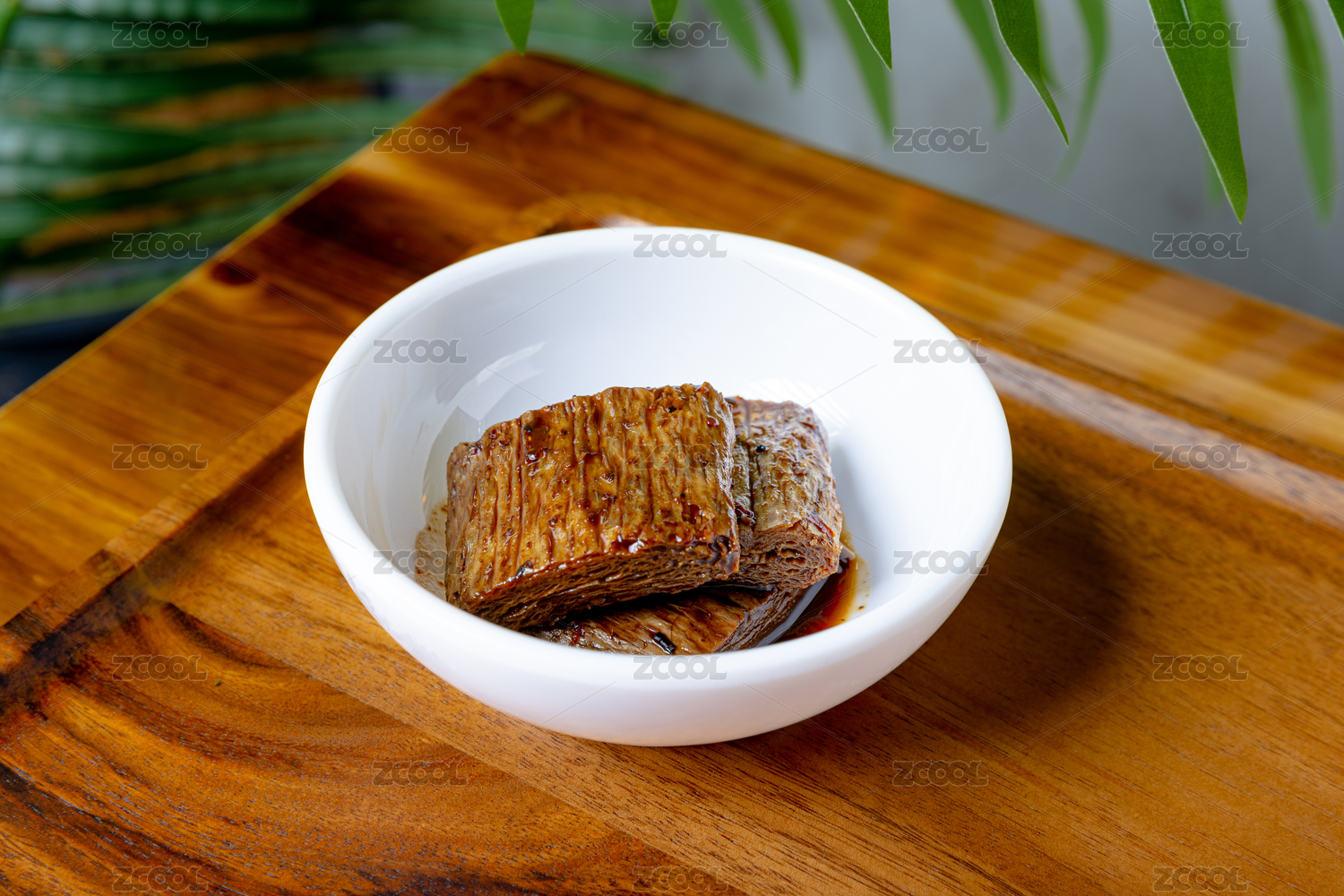 白盘里的凉菜红油辣椒拌笋尖豆干