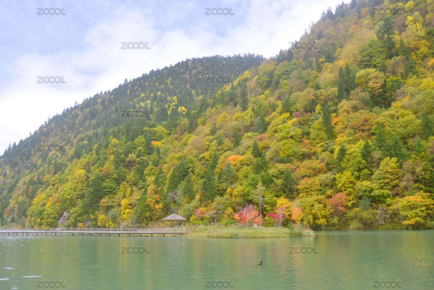 川西阿坝奶子沟洛哩措海子的彩林风光