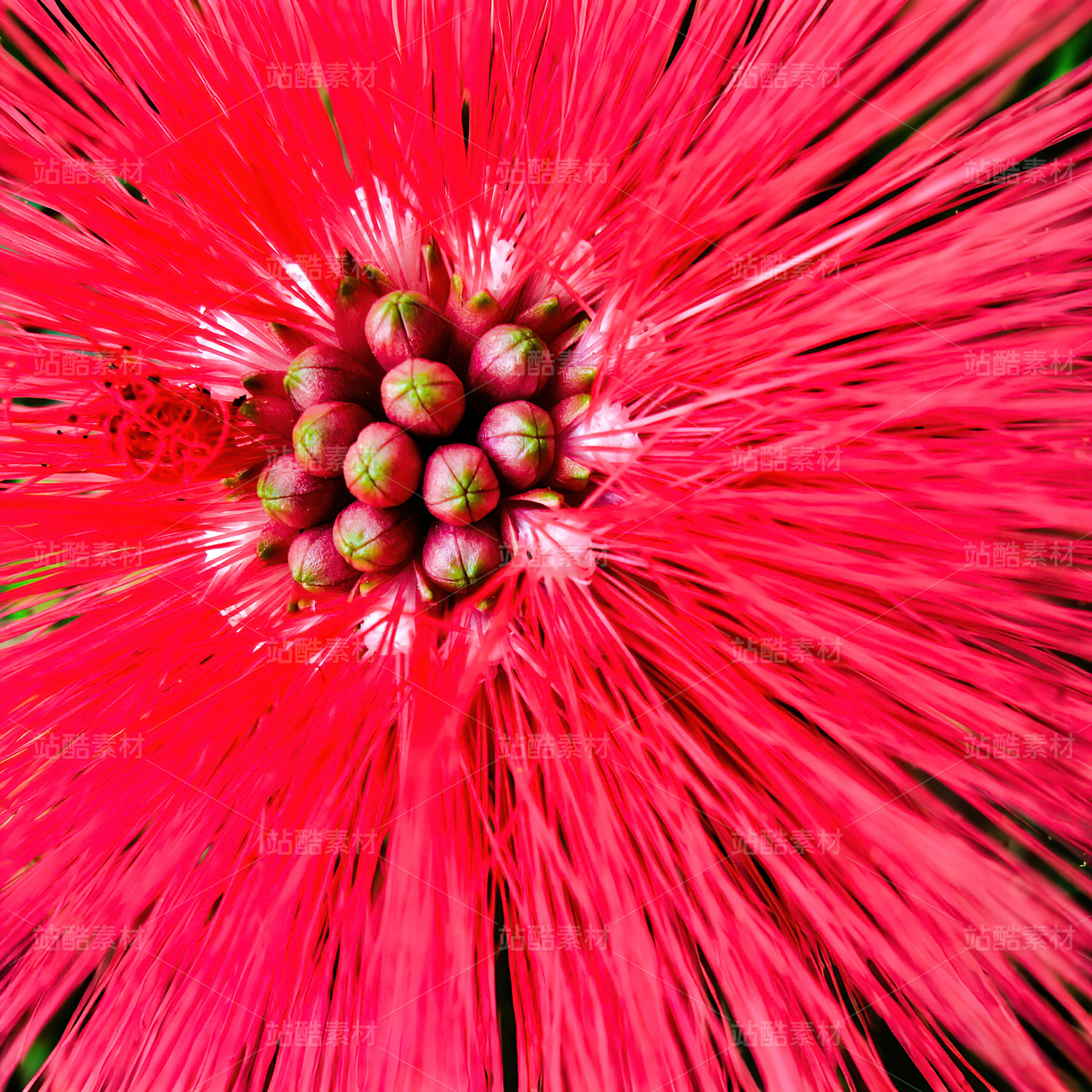 一只在红绒球朱缨花上采蜜的蜜蜂