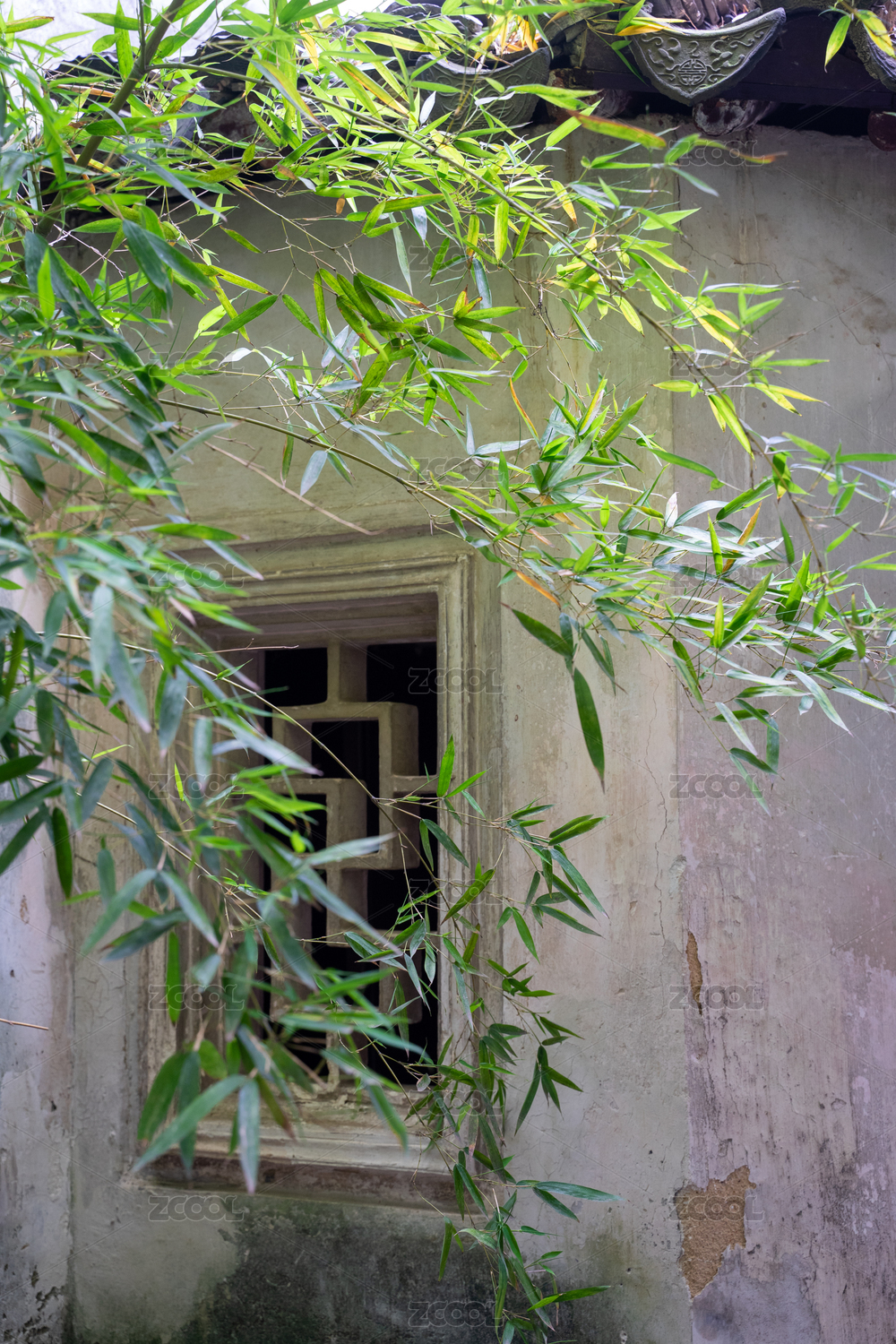 西安广仁寺寺庙红墙灰瓦青砖与绿色竹子