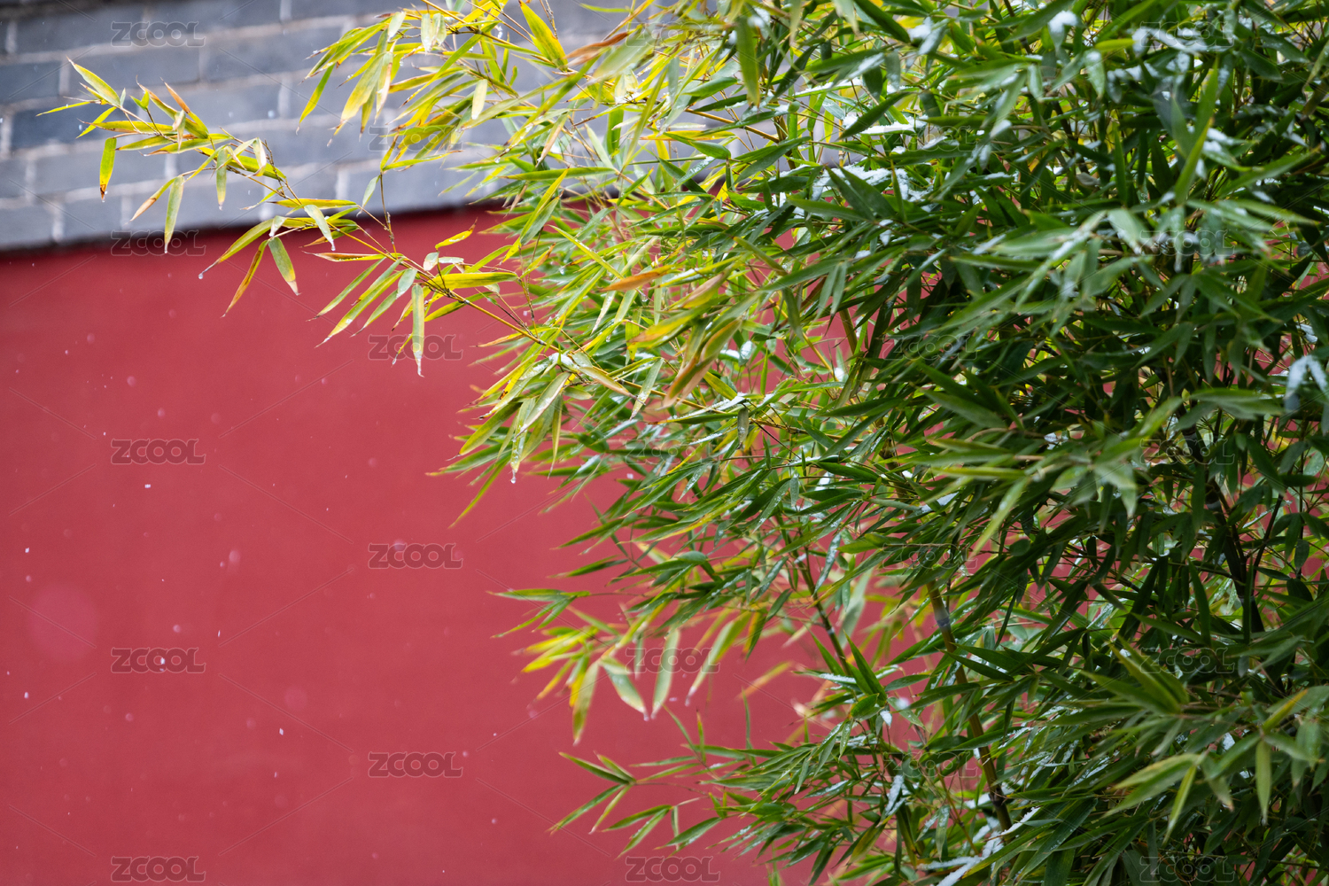 西安广仁寺古建筑红墙绿色竹子中式美学