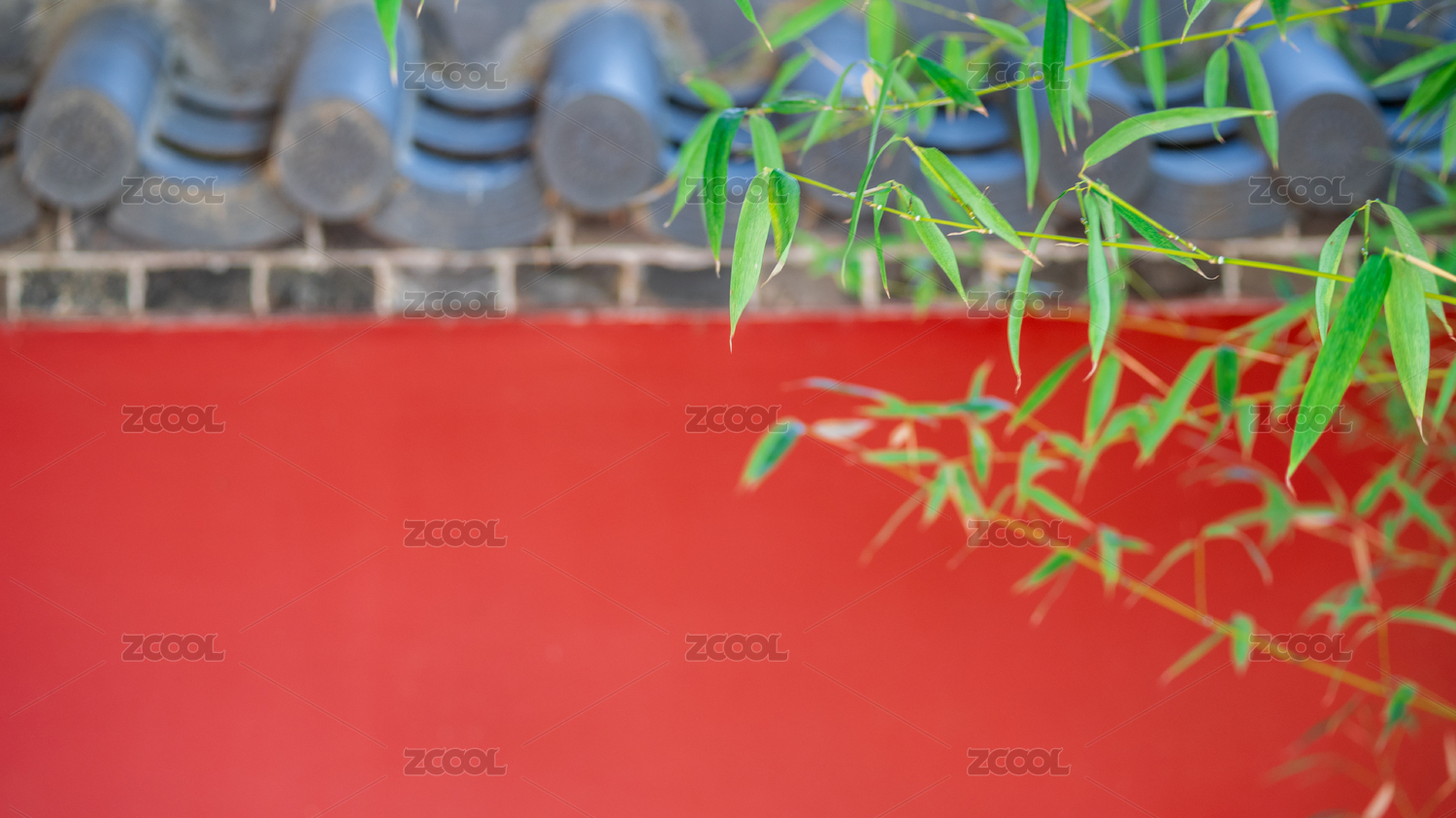 西安广仁寺寺庙古建筑红墙与绿色竹子