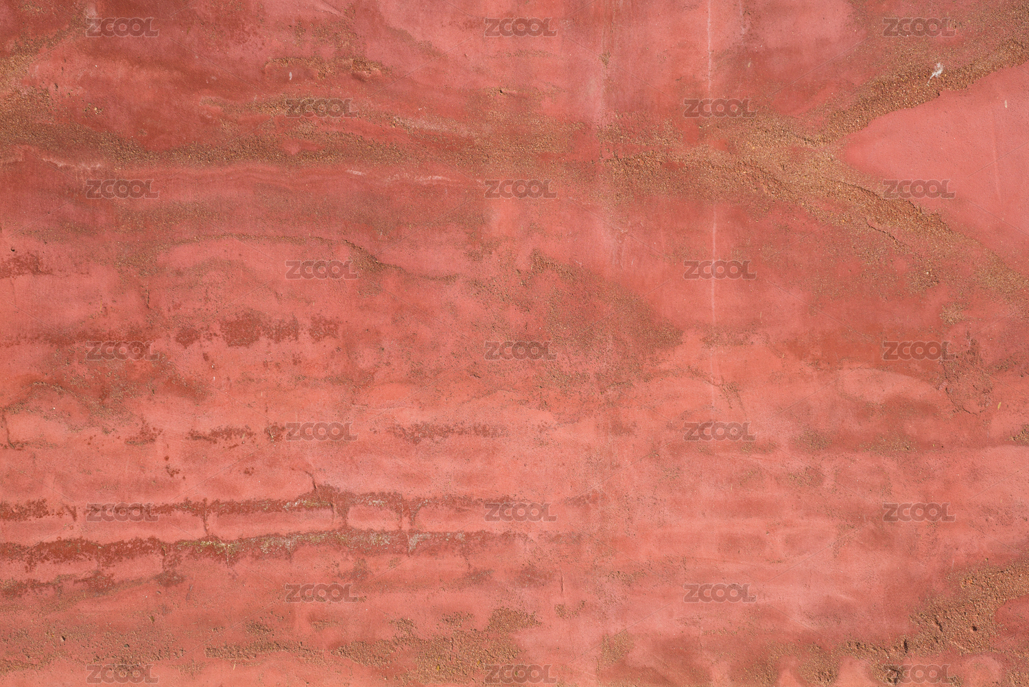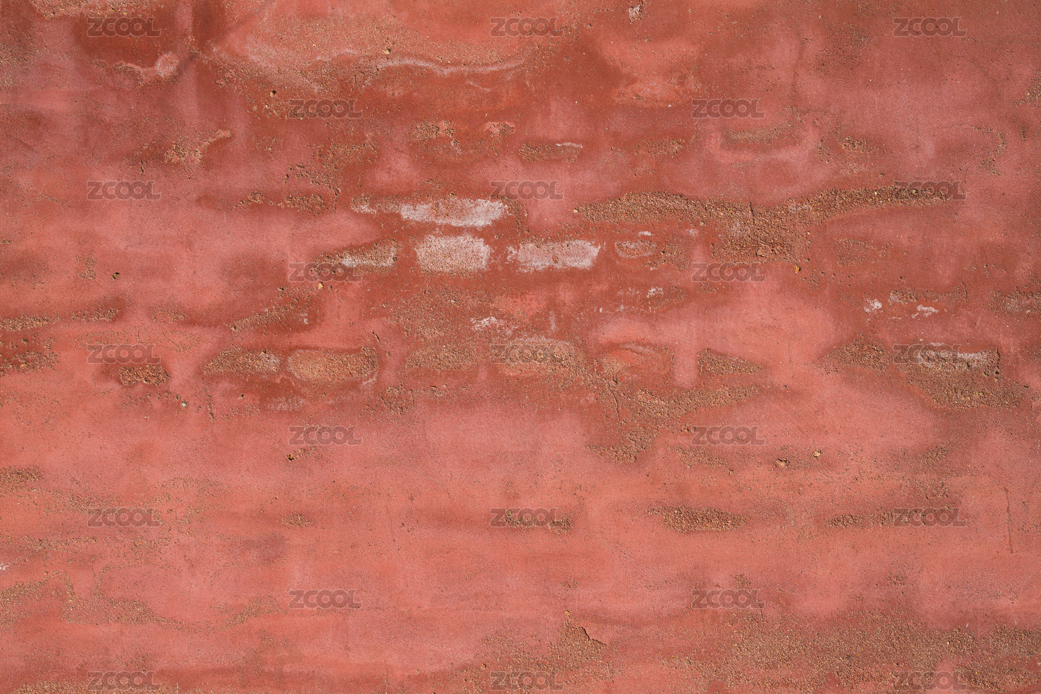 红色水泥墙上被侵蚀的痕迹特写