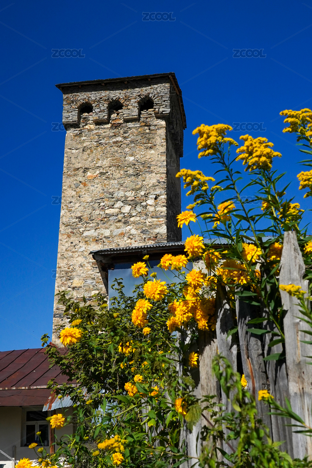 格鲁吉亚梅斯蒂亚高加索风景碉楼夜景