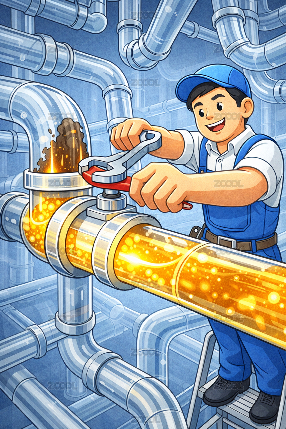 工人拧阀门疏通管道