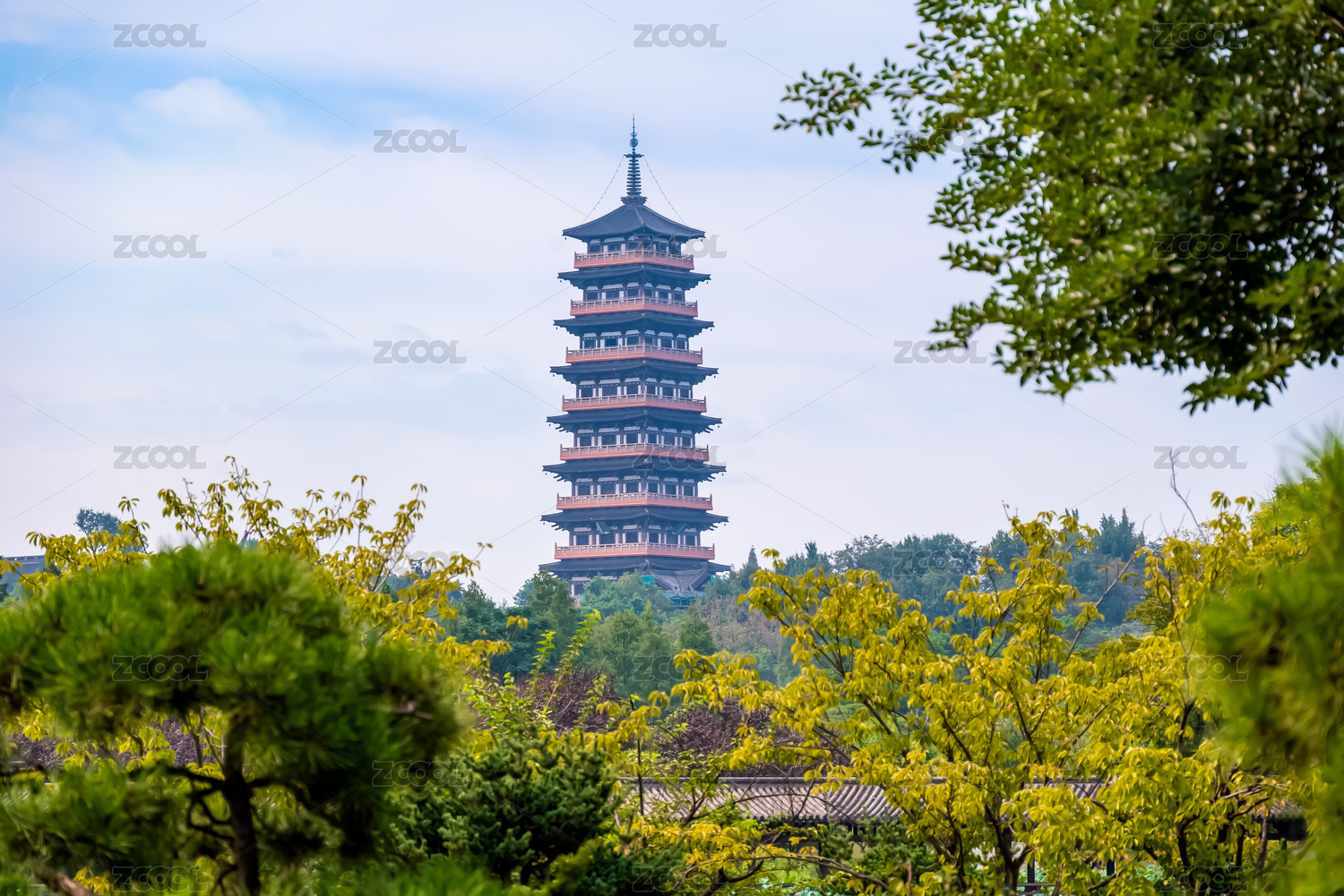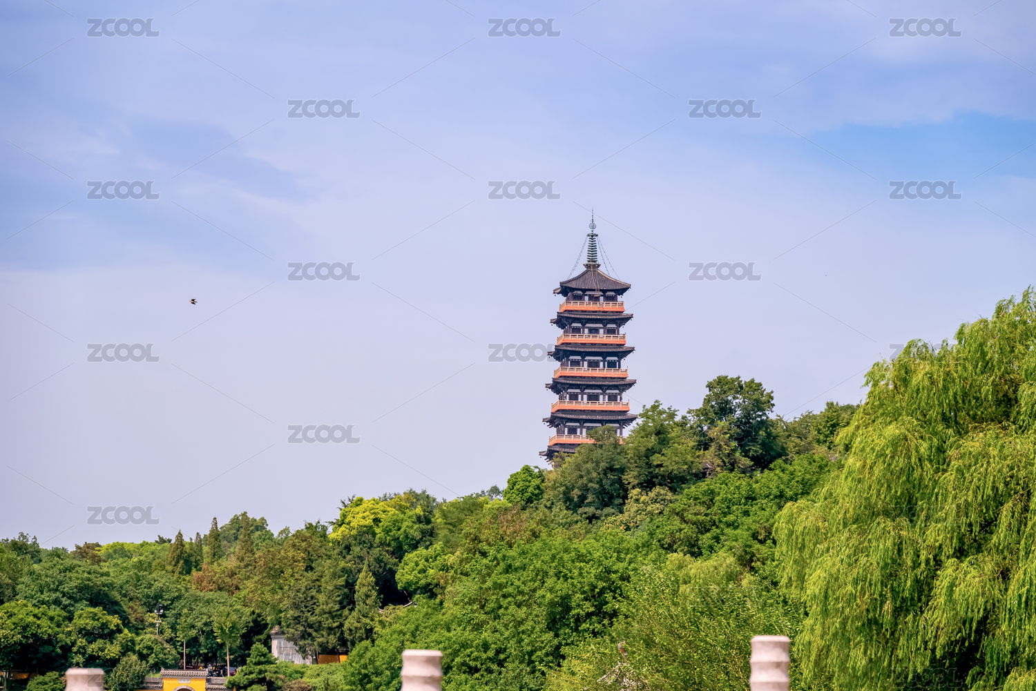 晴朗的午后,眺望扬州大明寺栖灵塔风景