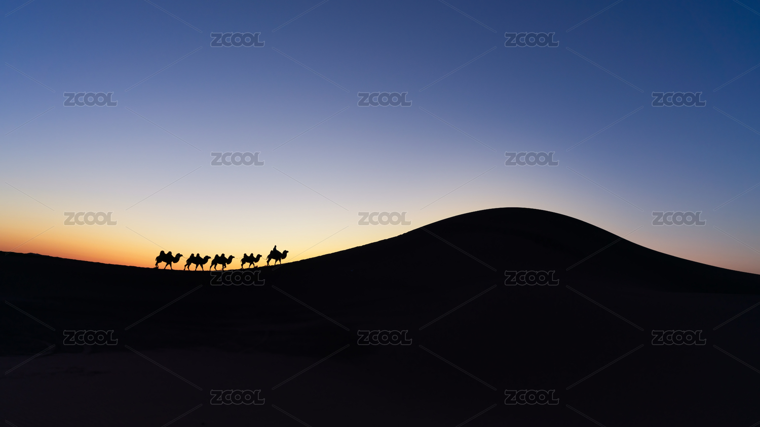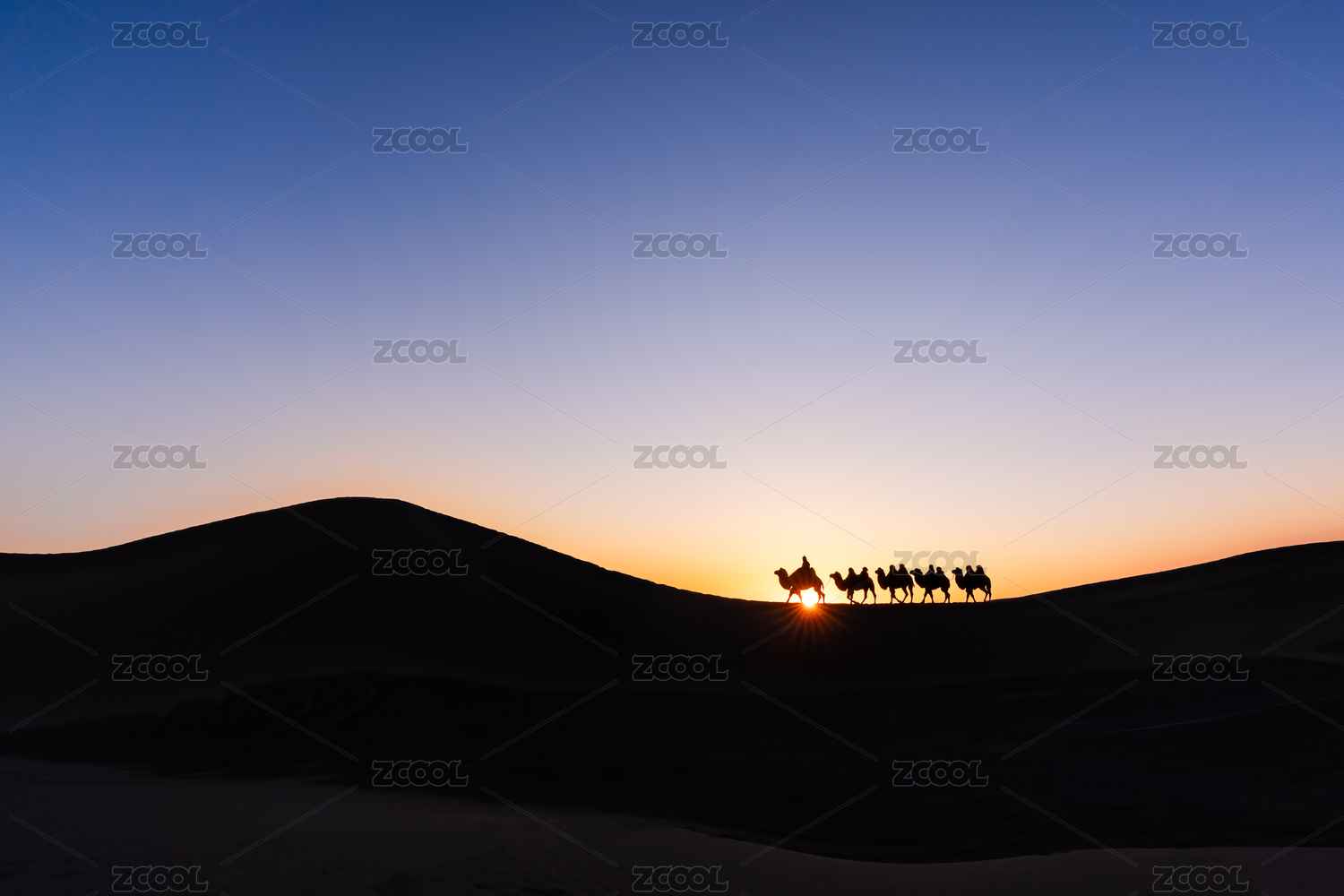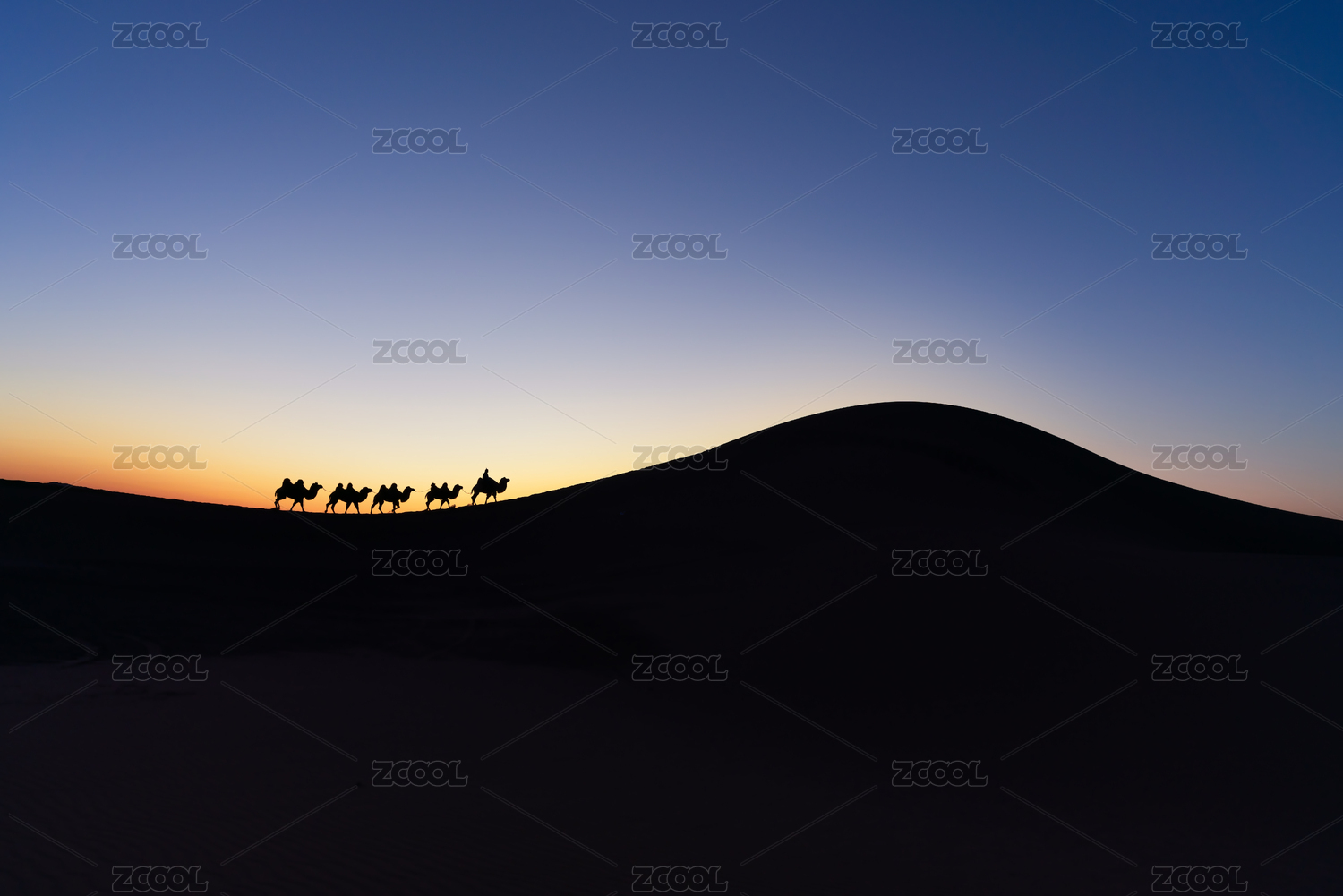 内蒙古阿拉善旗丹巴吉林沙漠驼队晨光