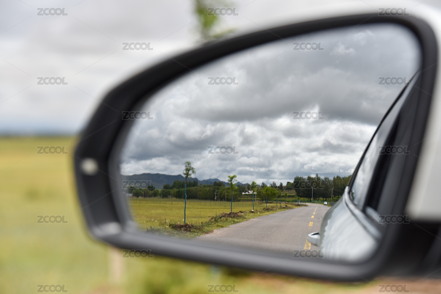 后视镜中的乡村道路