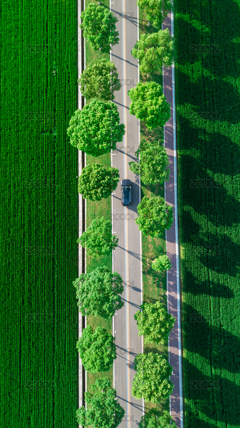 航拍俯视乡村道路汽车行驶风景