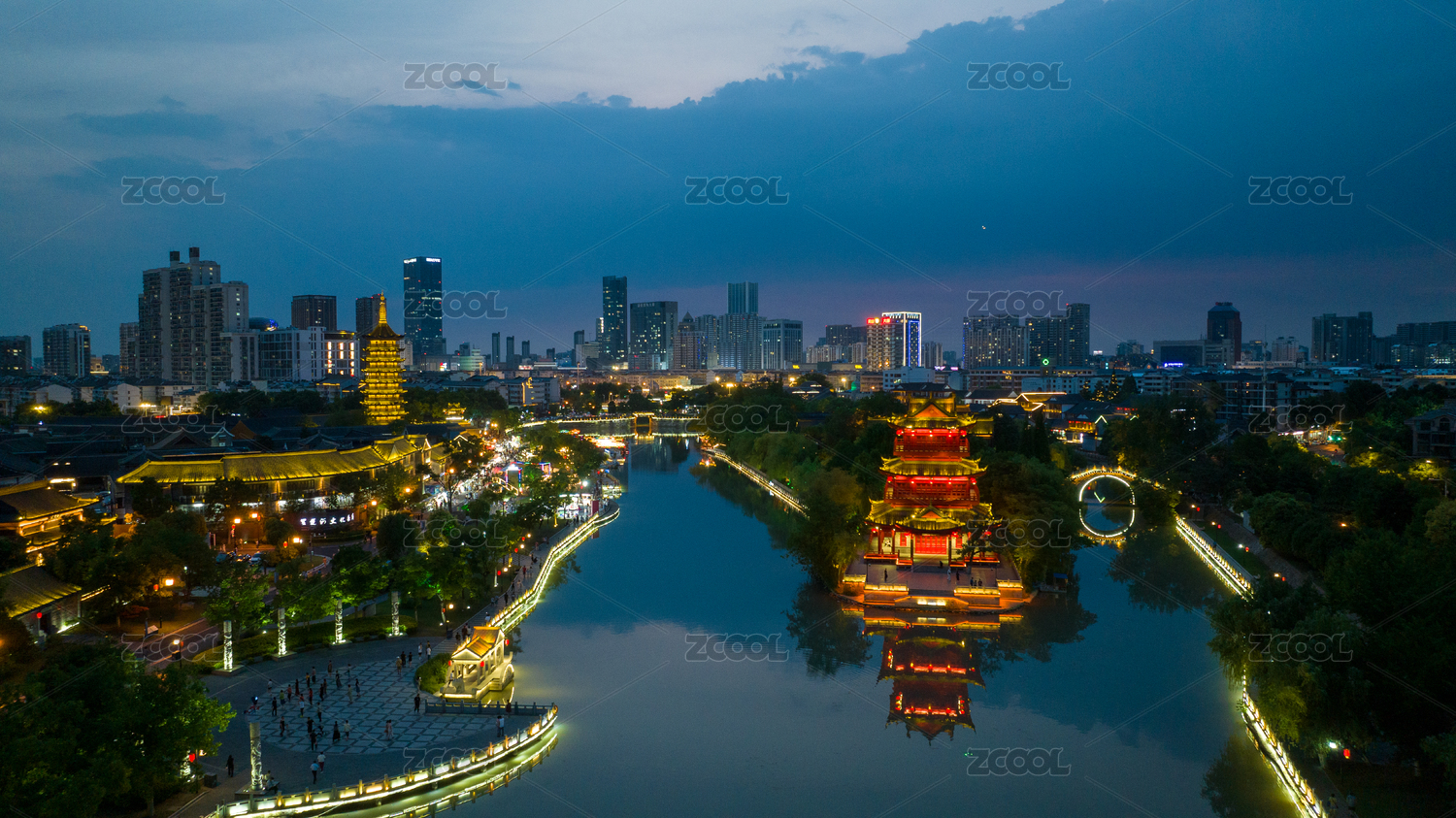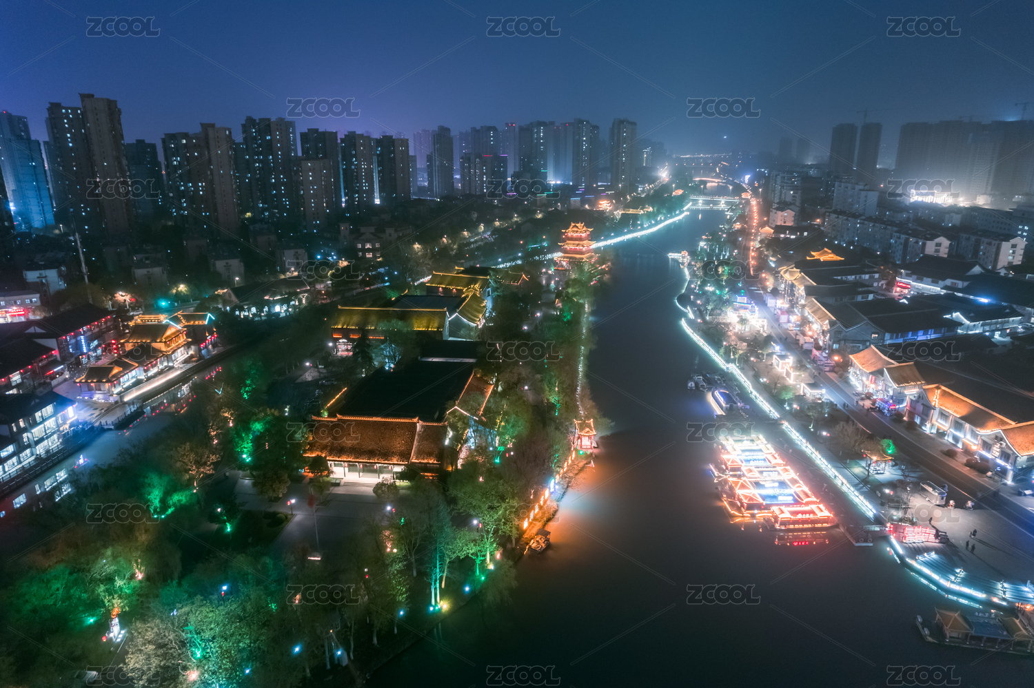 江苏淮安市里运河历史长廊清江浦楼航拍夜景