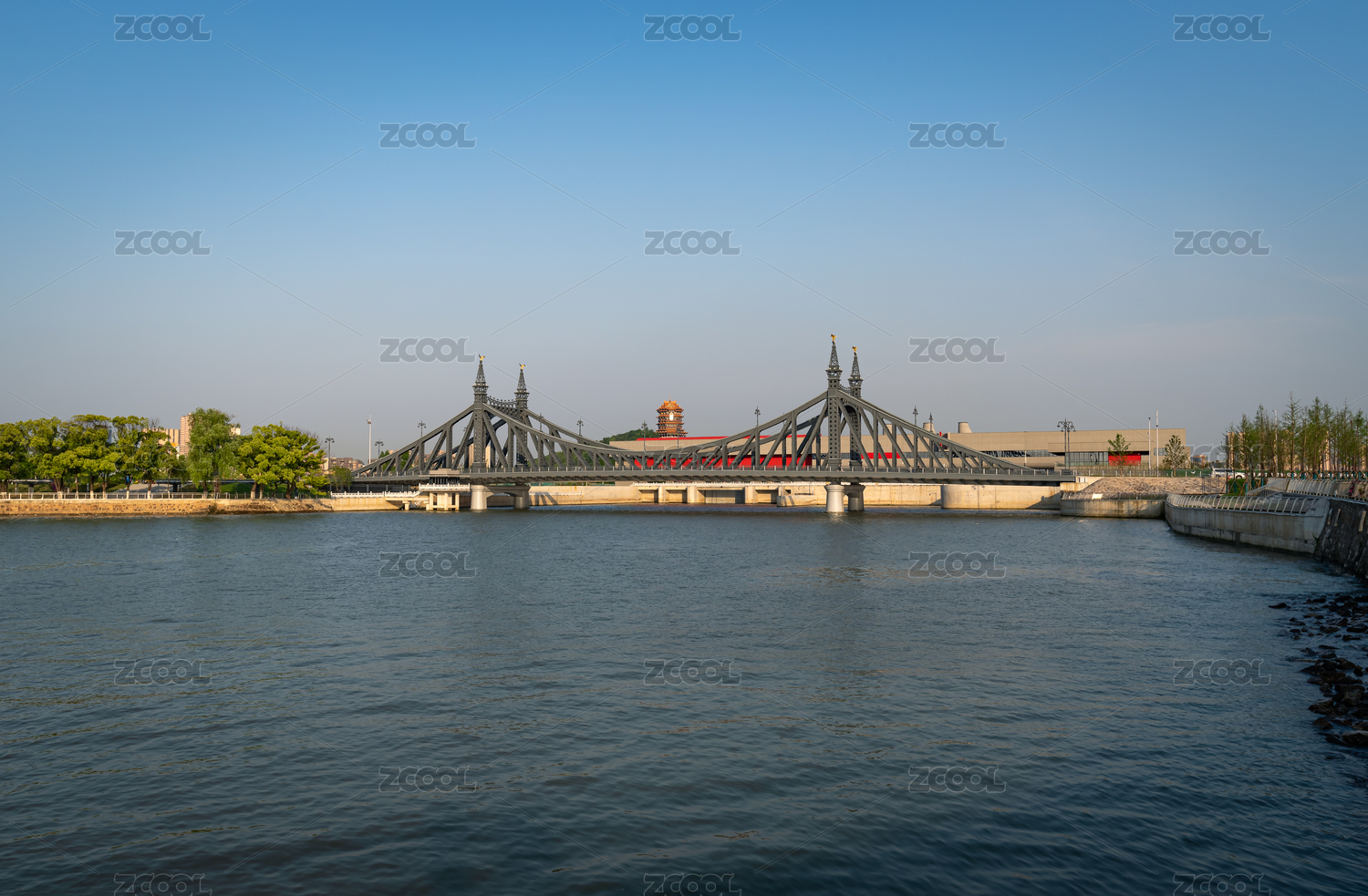 江苏江阴临江路桥和远处的君山寺圆通阁