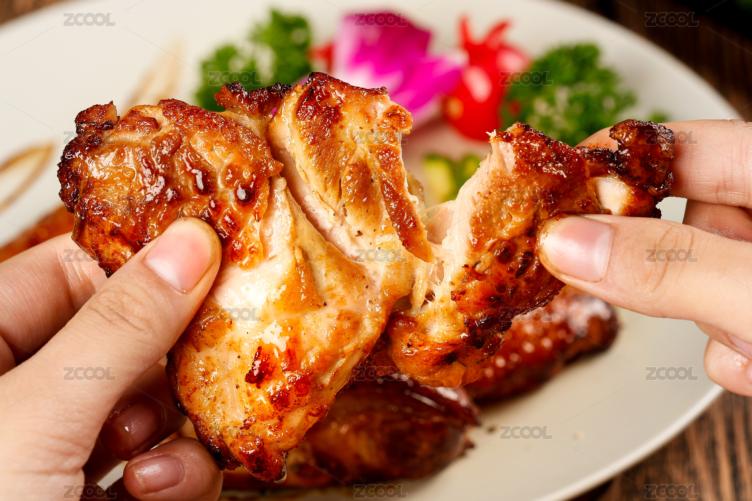 手上拿着炸鸡排