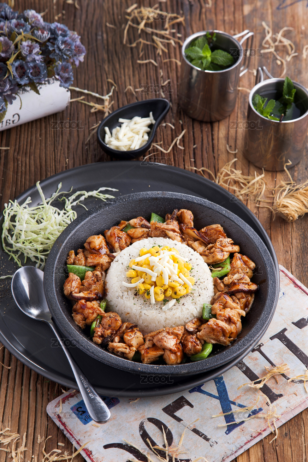 芝士鸡肉铁板饭