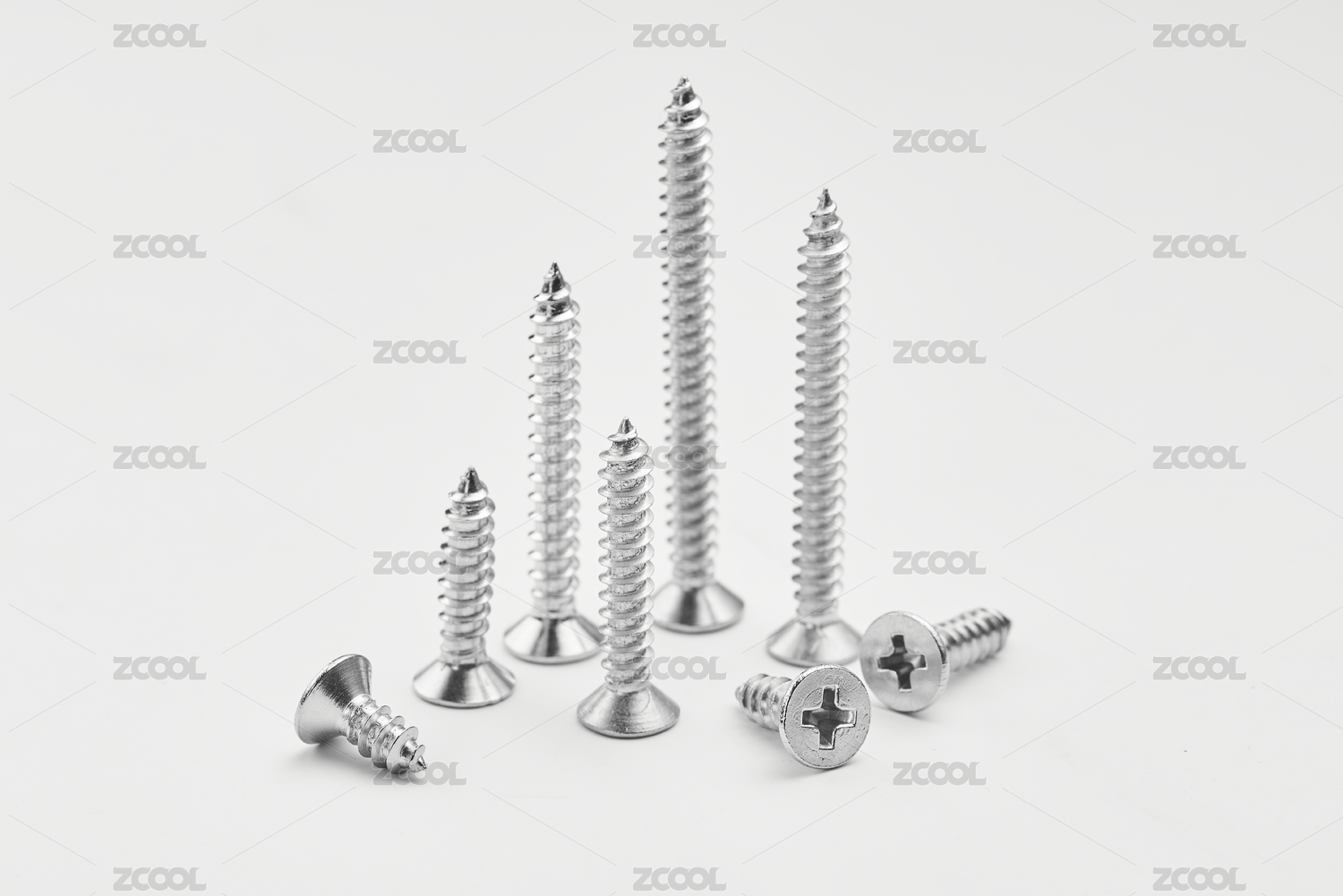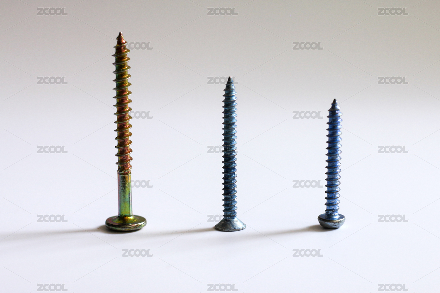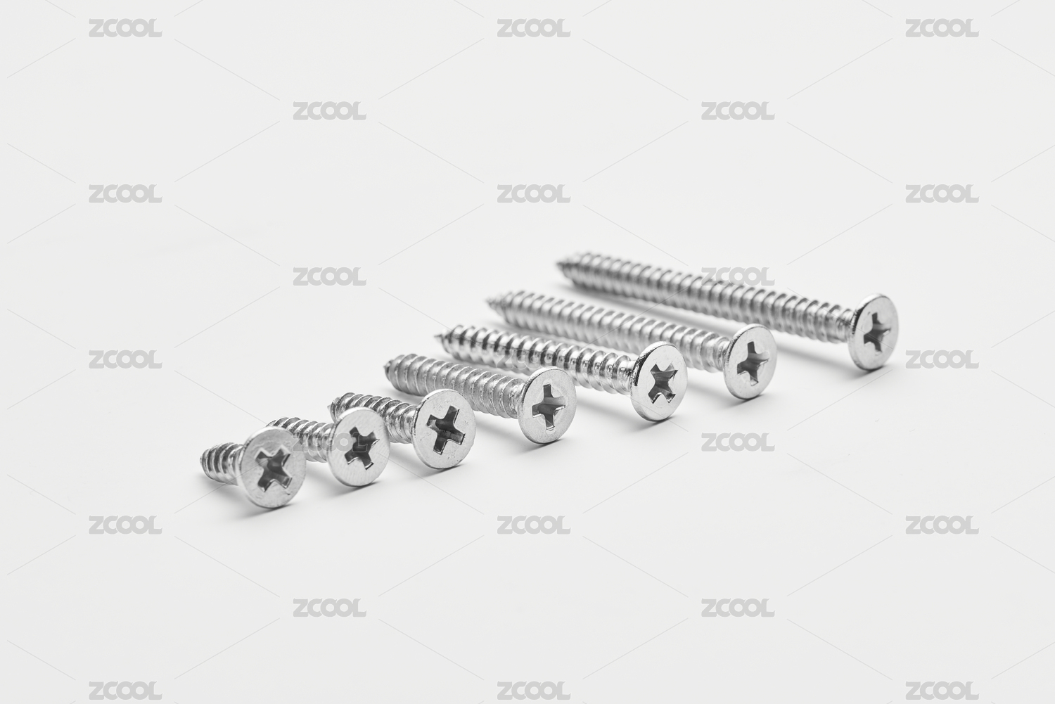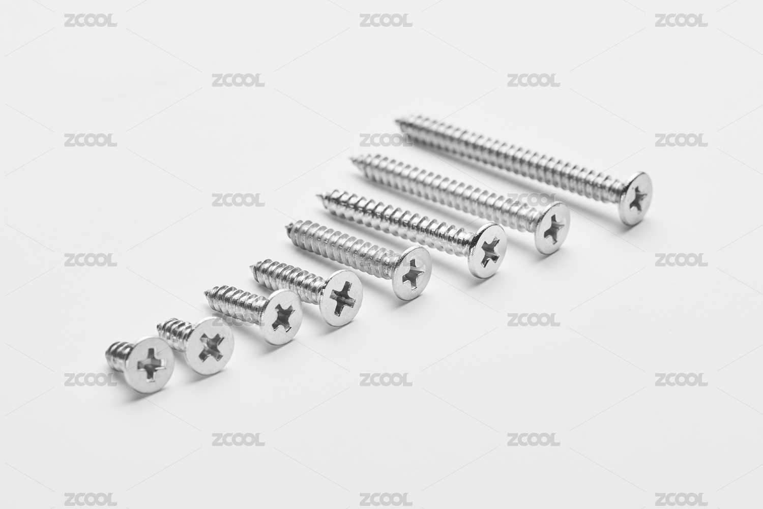 按照高矮排列的一组不锈钢螺丝钉