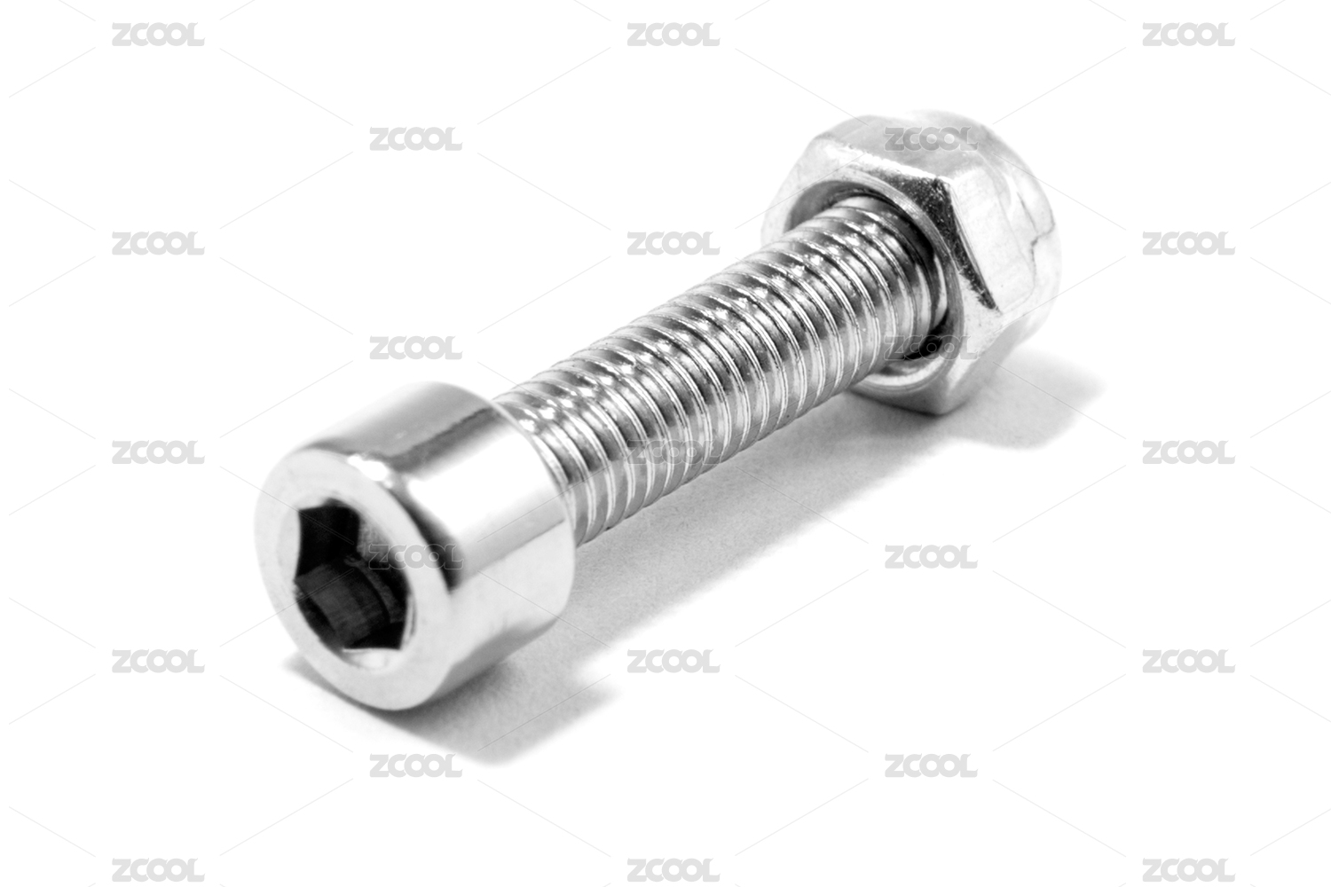 纯色纸板上放置的不锈钢螺丝钉